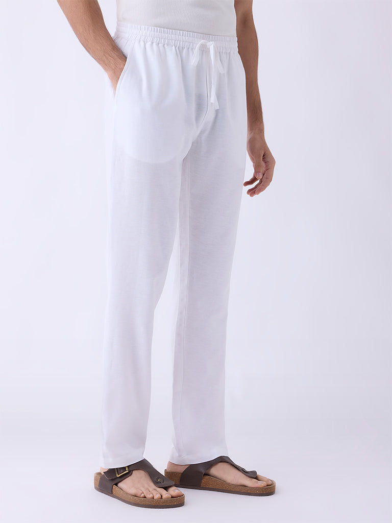 Mens Ethnicwear White Solid Relaxed-Fit Mid-Rise Pants