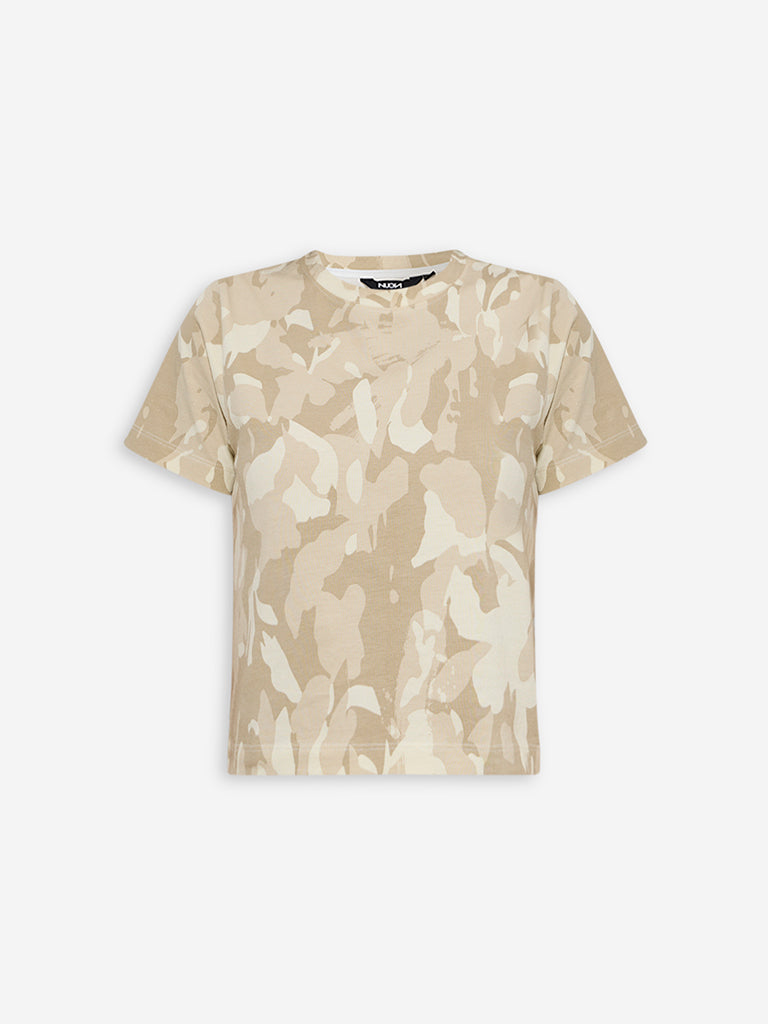 Nuon Beige Camouflage Design Cotton T-Shirt