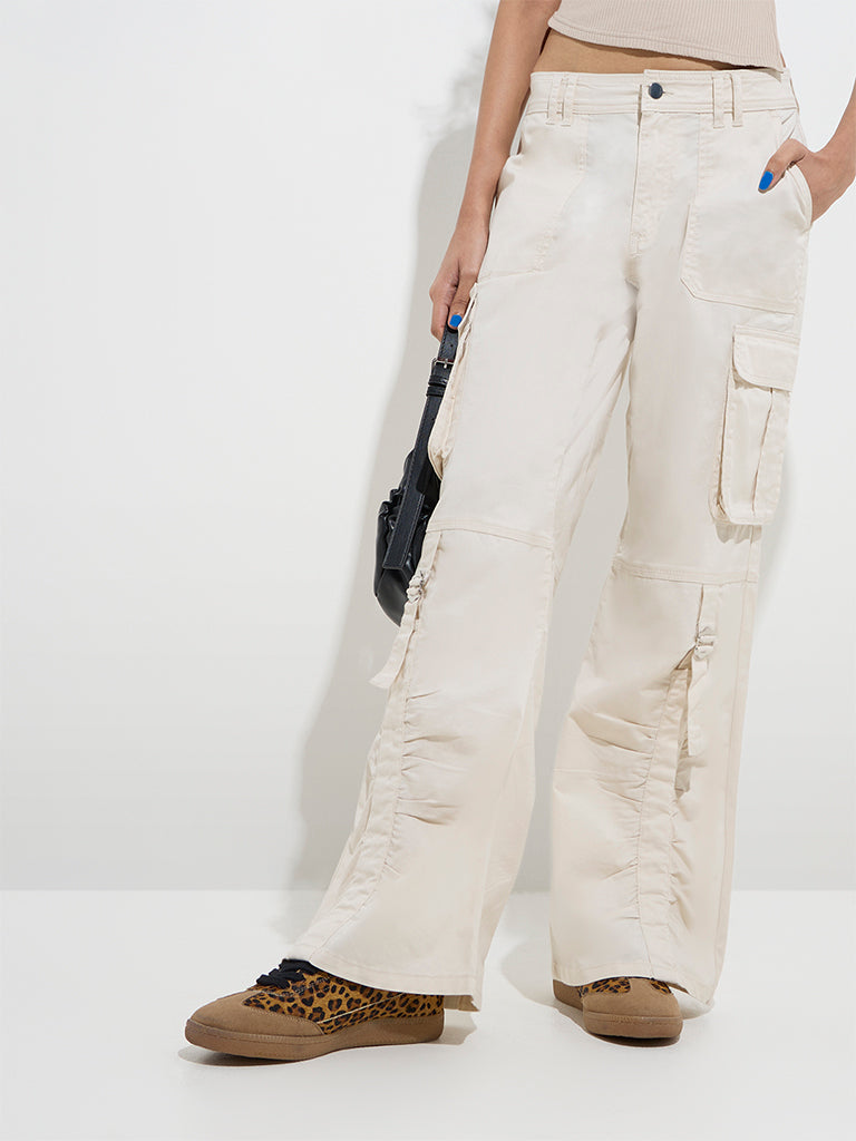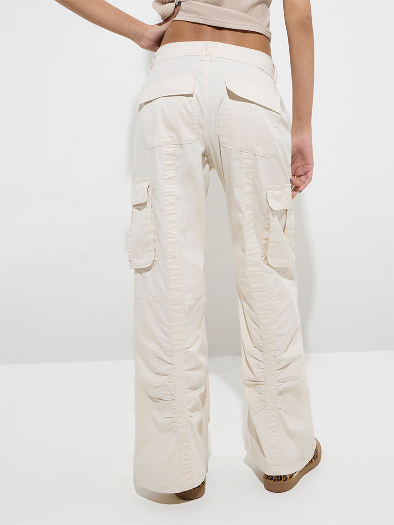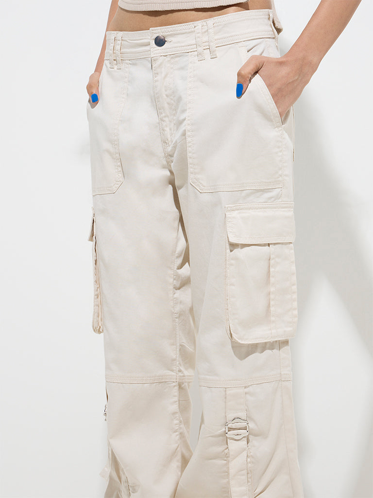 Nuon Beige Cargo-Style Relaxed-Fit Mid-Rise Jeans