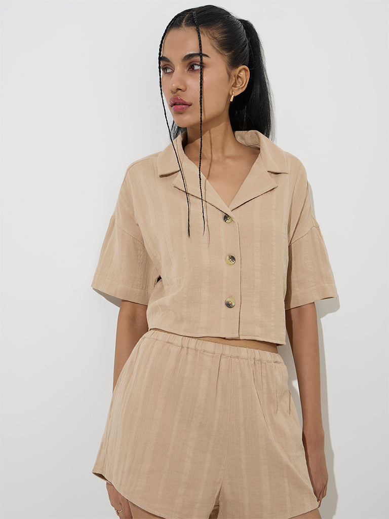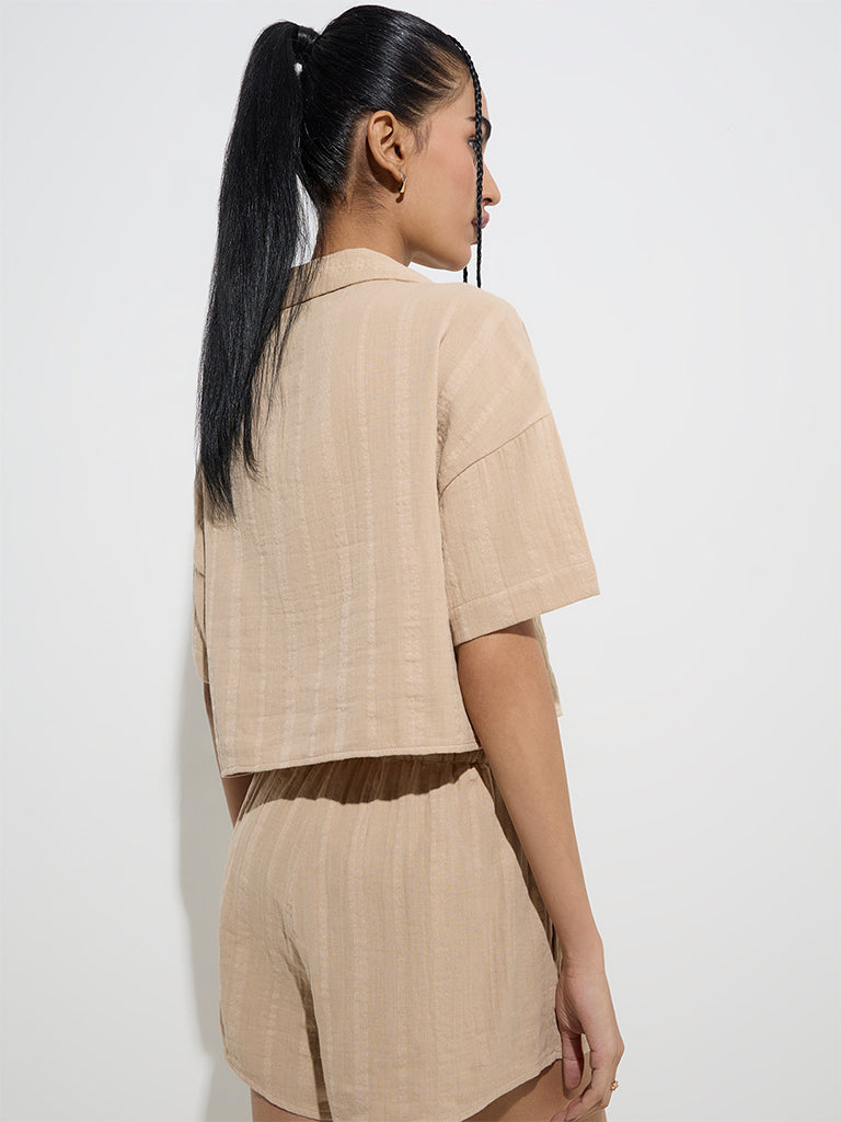 Nuon Beige Crinkle-Textured Cotton Shirt