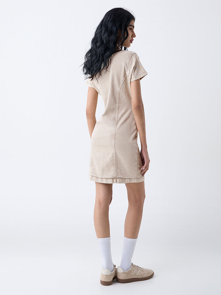 Channel modern ease in this beige washed denim dress from Nuon. Made from pure cotton. it is styled with a button placket. chest pockets. and short sleeves. creating a piece that’s equal parts trendy and versatile.