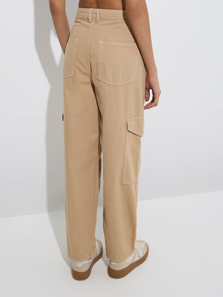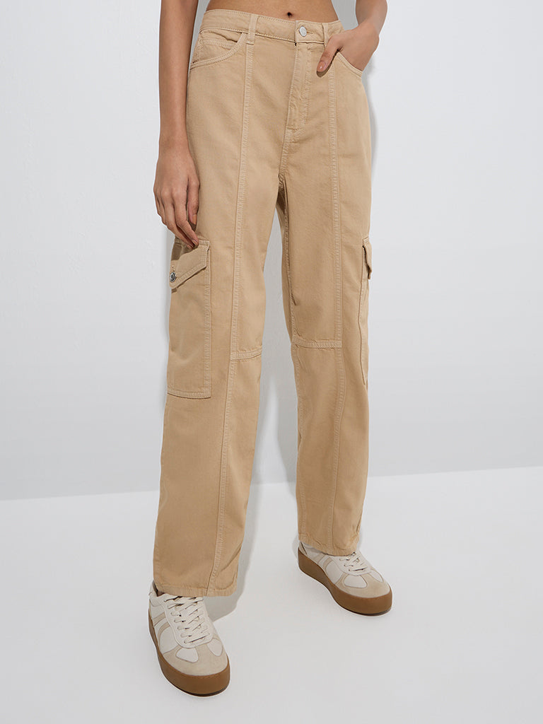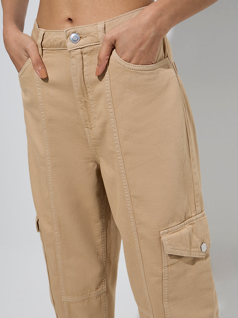 Nuon Beige Relaxed-Fit High-Rise Jeans
