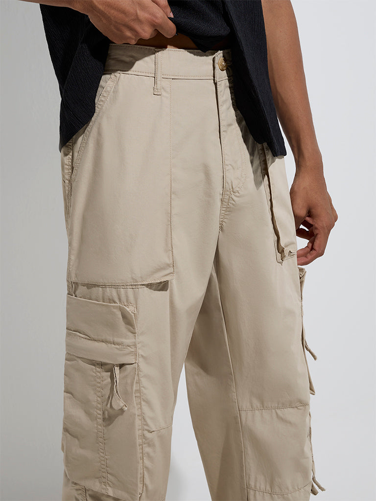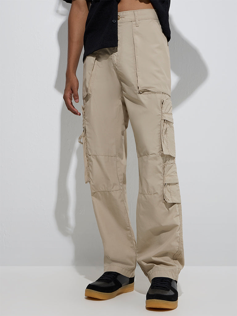Nuon Beige Relaxed-Fit Mid-Rise Cotton Chinos