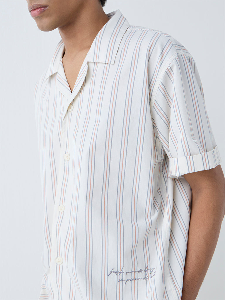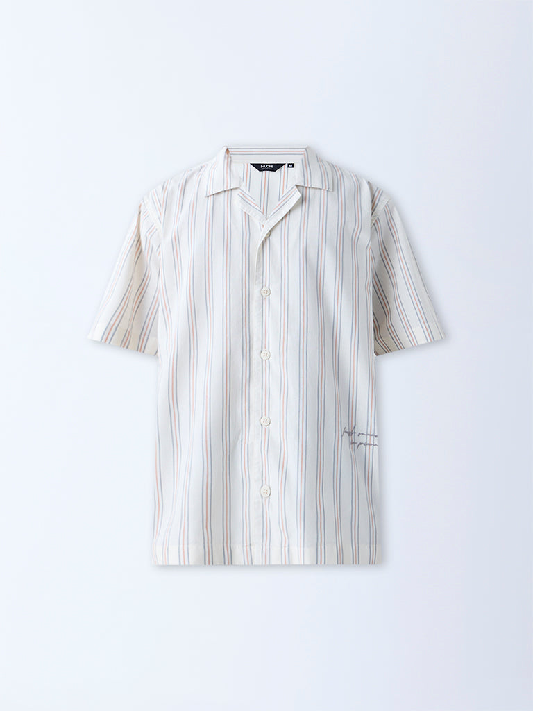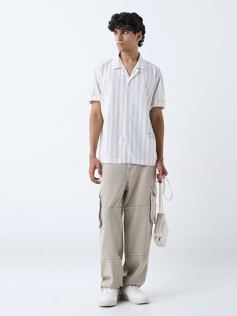 Nuon Beige Stripe Relaxed-Fit Cotton Shirt