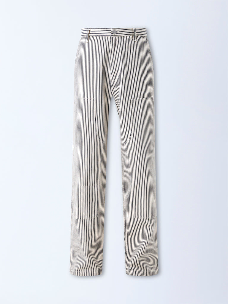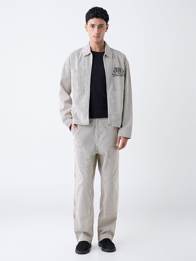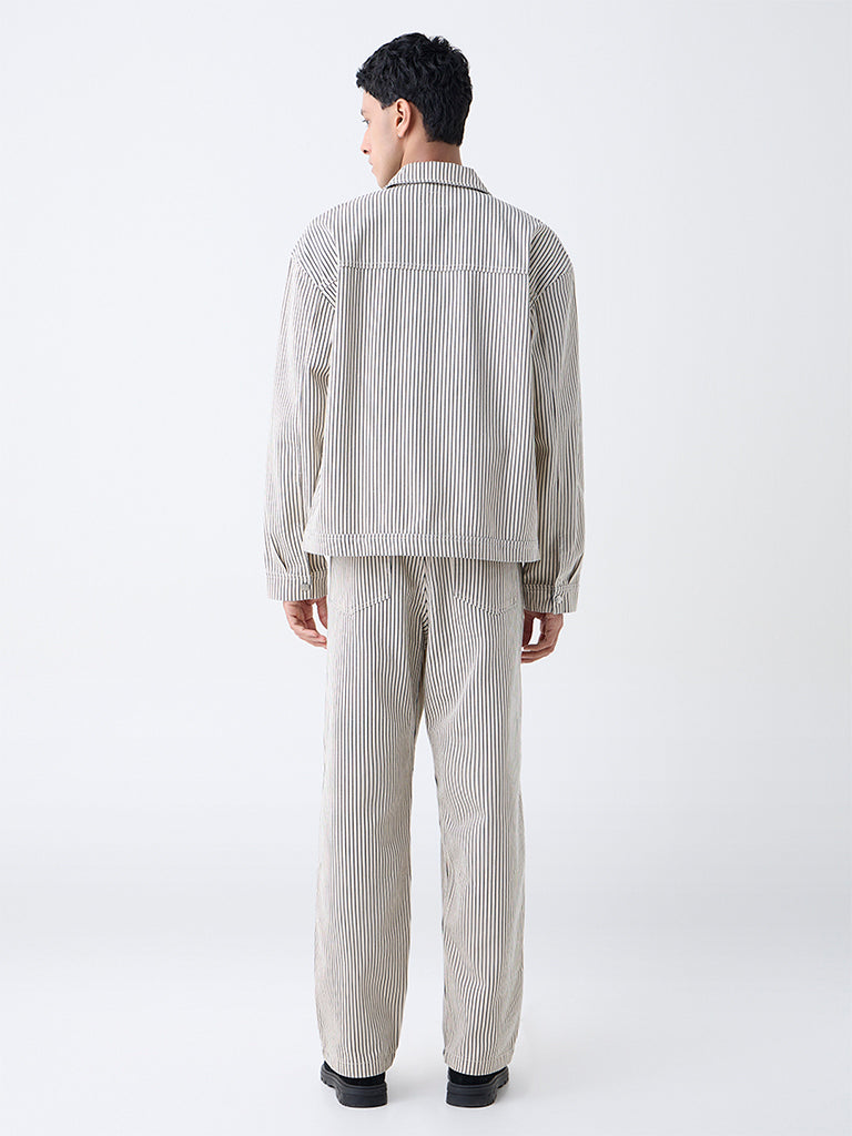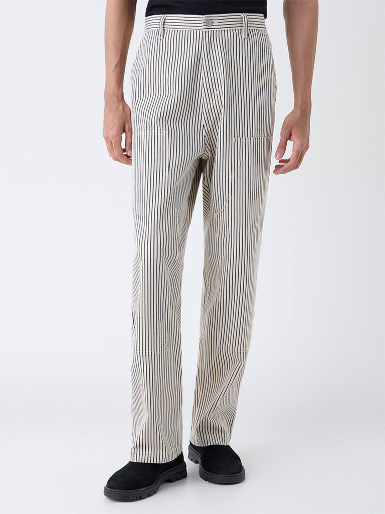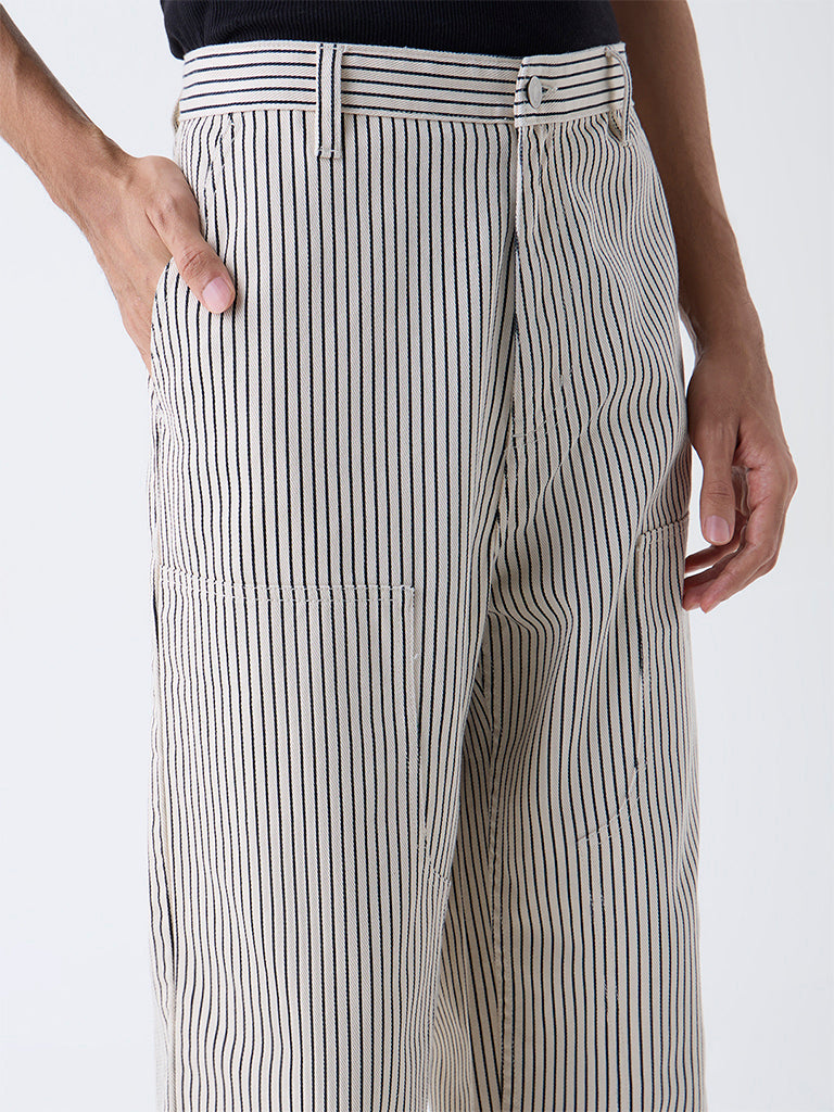 Nuon Beige Striped Loose-Fit Mid-Rise Cotton Pants
