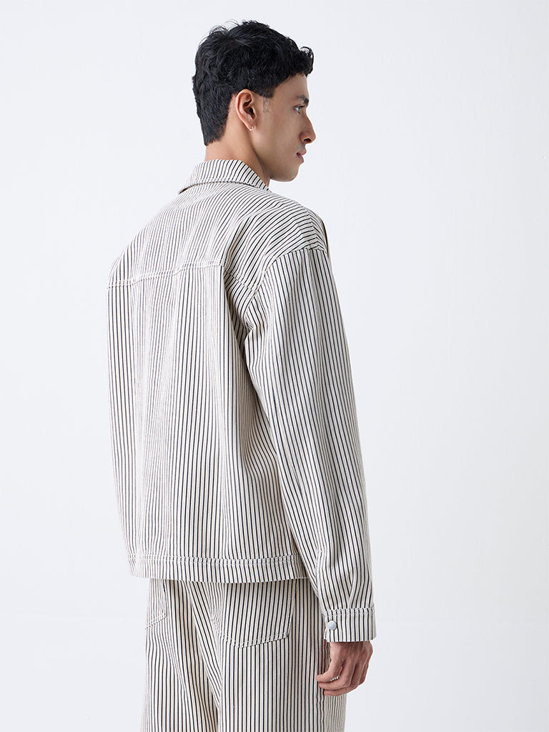 Nuon Beige Striped Relaxed-Fit Cotton Jacket