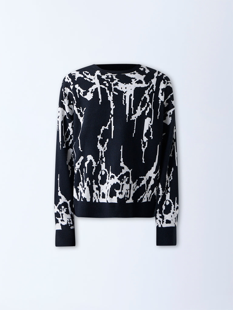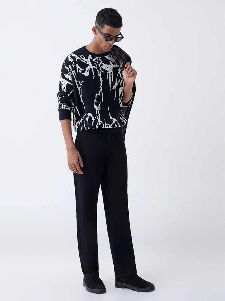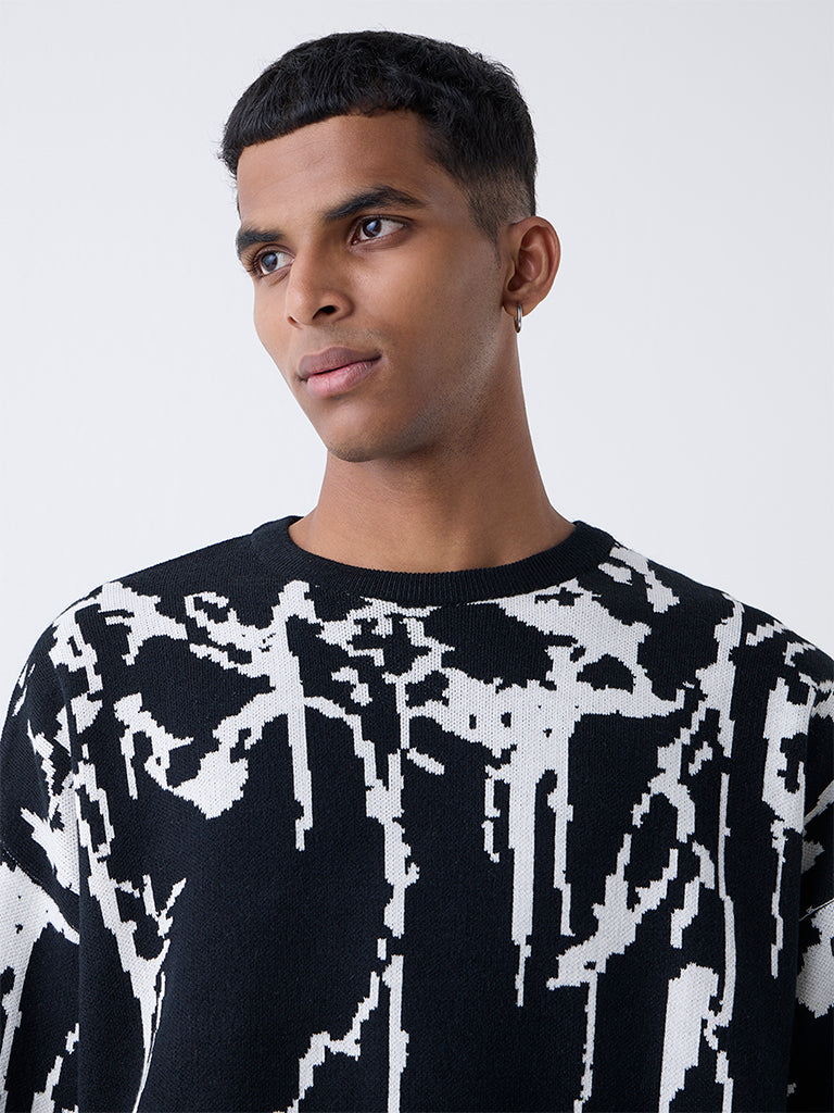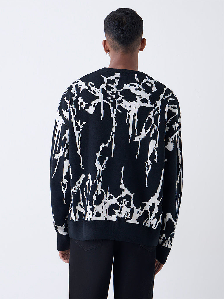 Nuon Black Abstract Design Relaxed-Fit Sweater