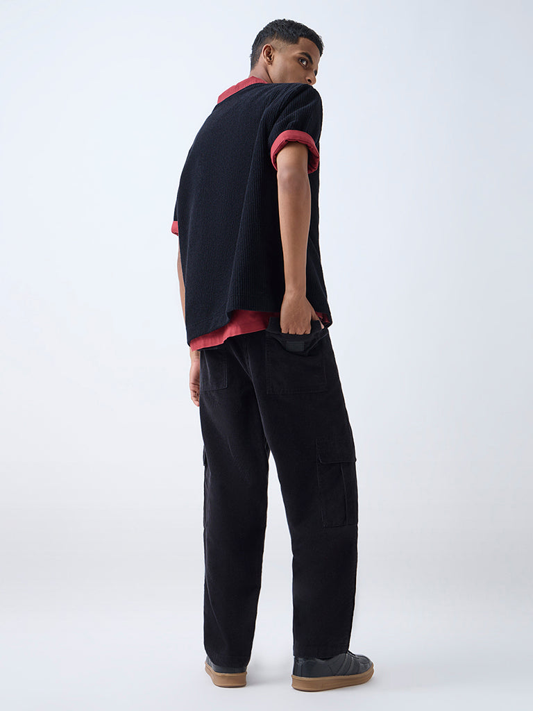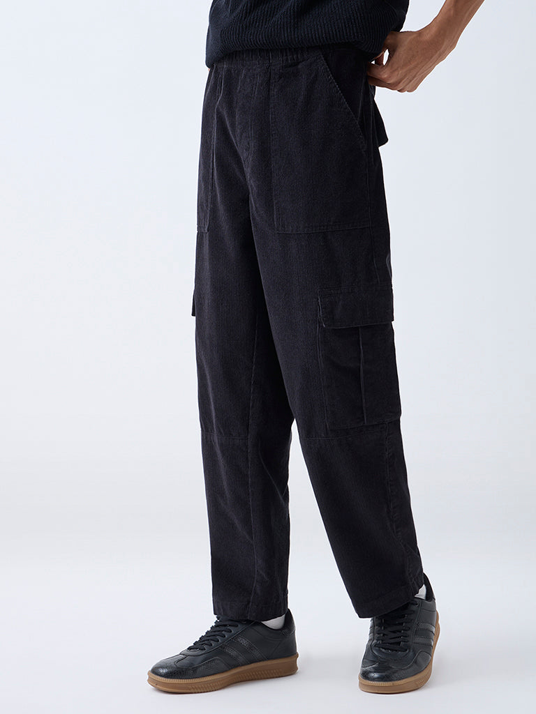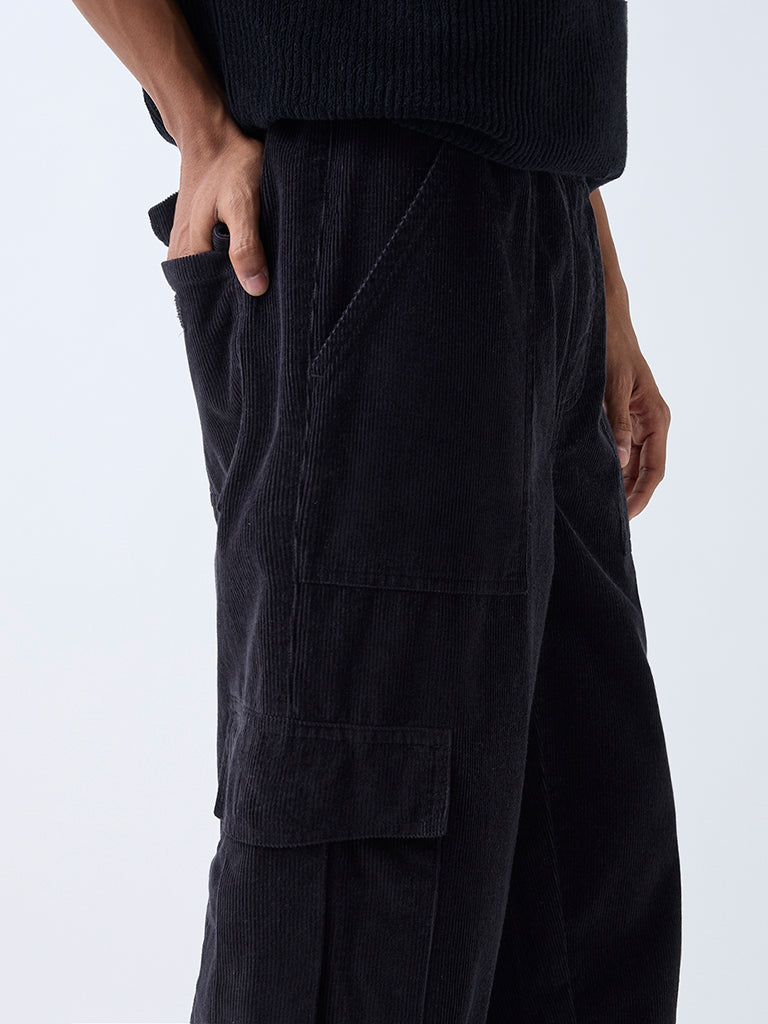 Nuon Black Cargo-Style Relaxed-Fit Mid-Rise Corduroy Pants