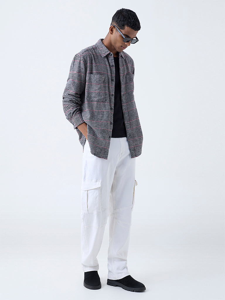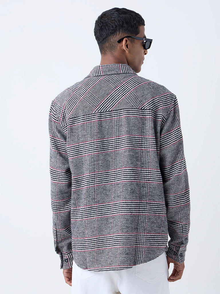 Nuon Black Checkered Pattern Relaxed-Fit Cotton Shirt