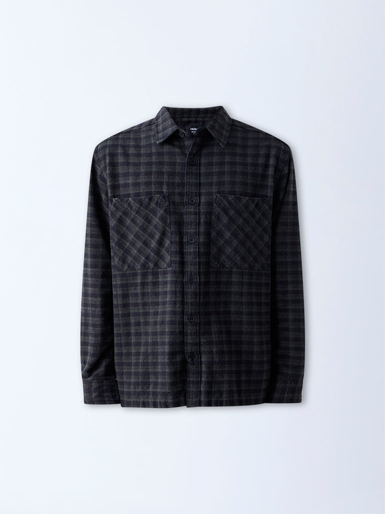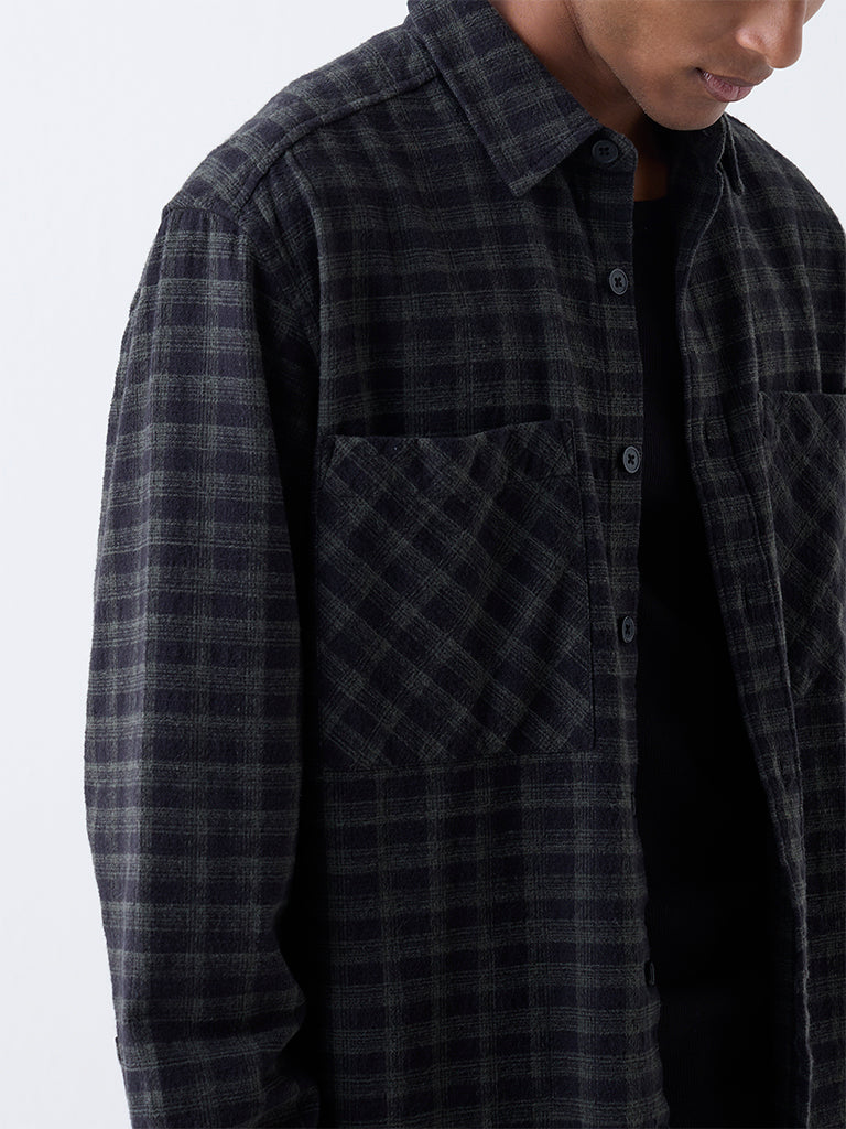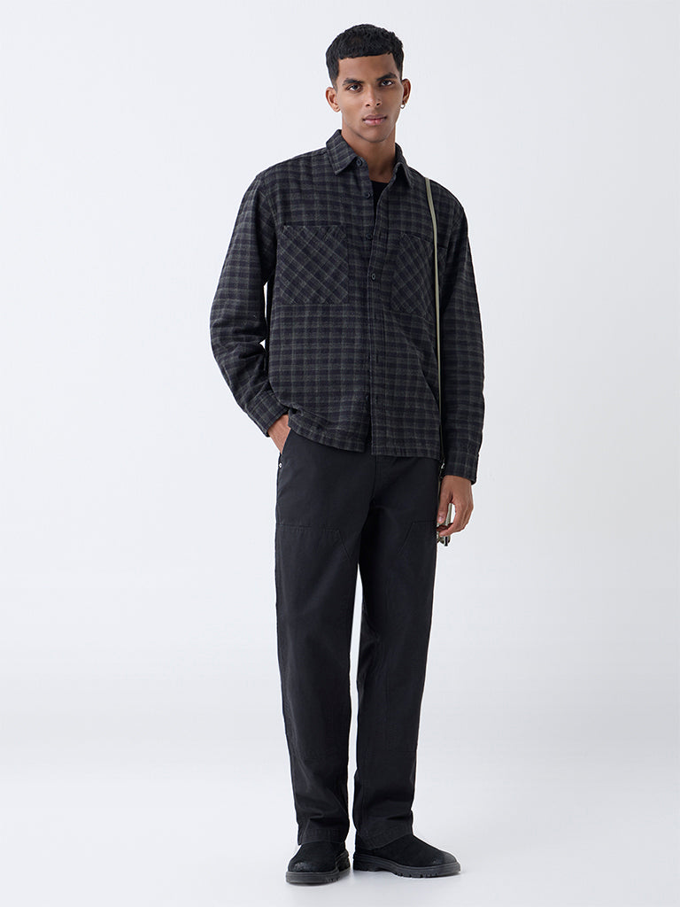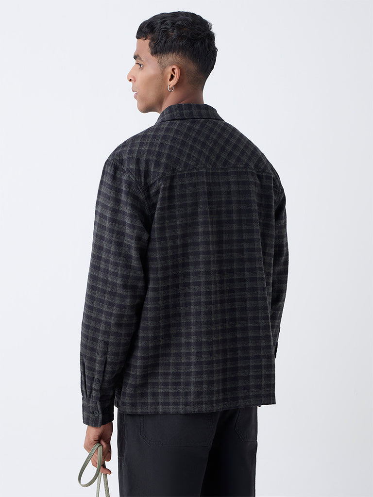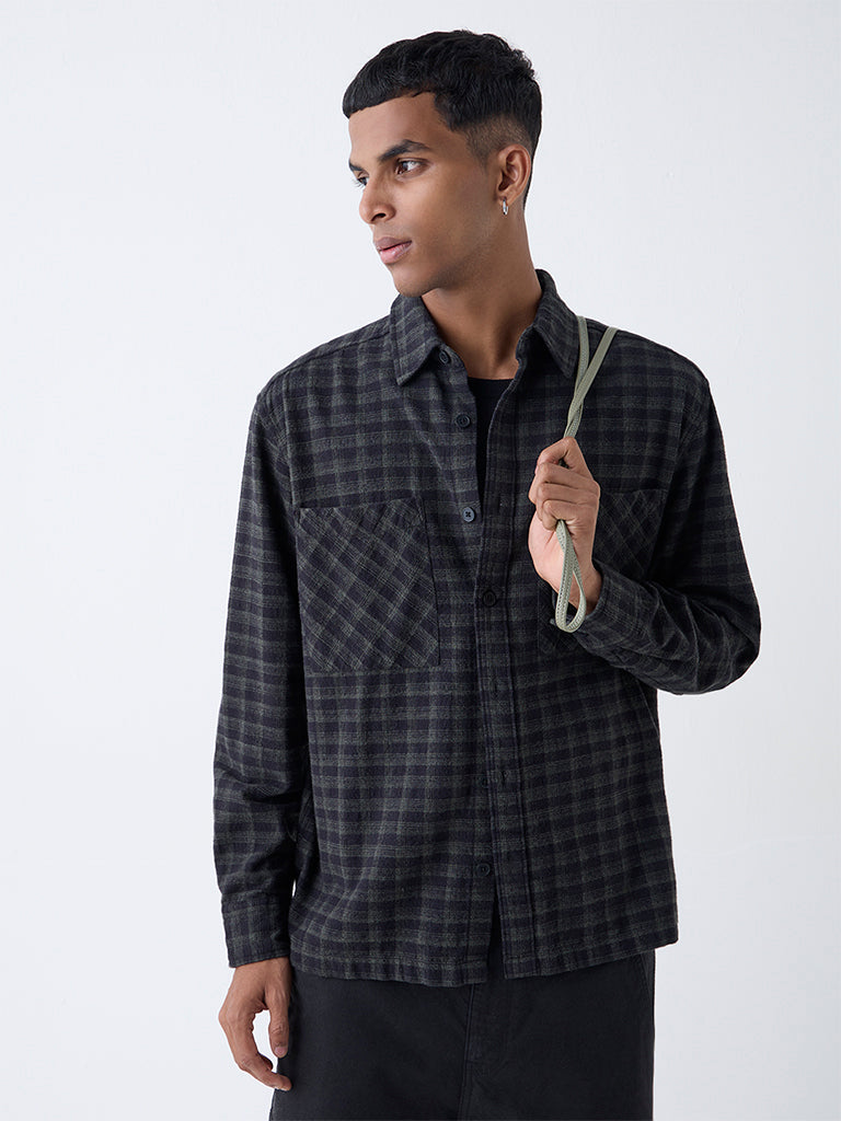 Nuon Black Checks Pattern Relaxed-Fit Cotton Shirt