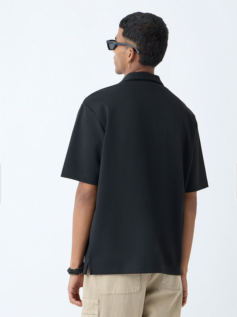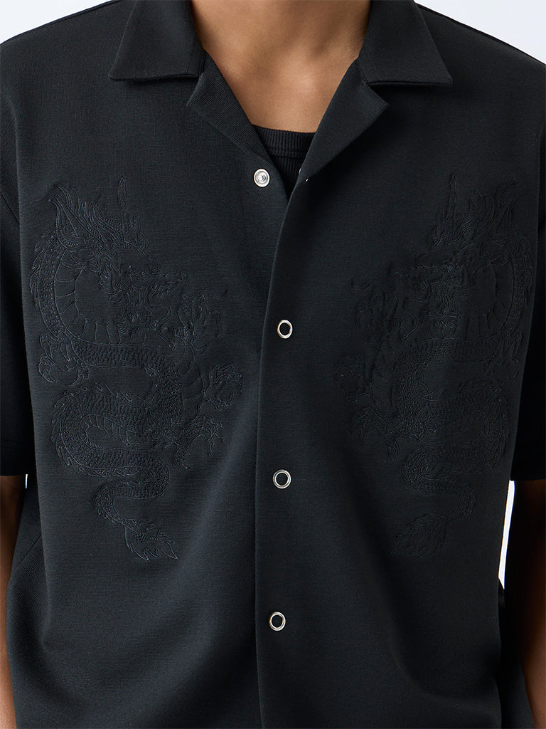 Nuon Black Embroidered Relaxed-Fit Shirt