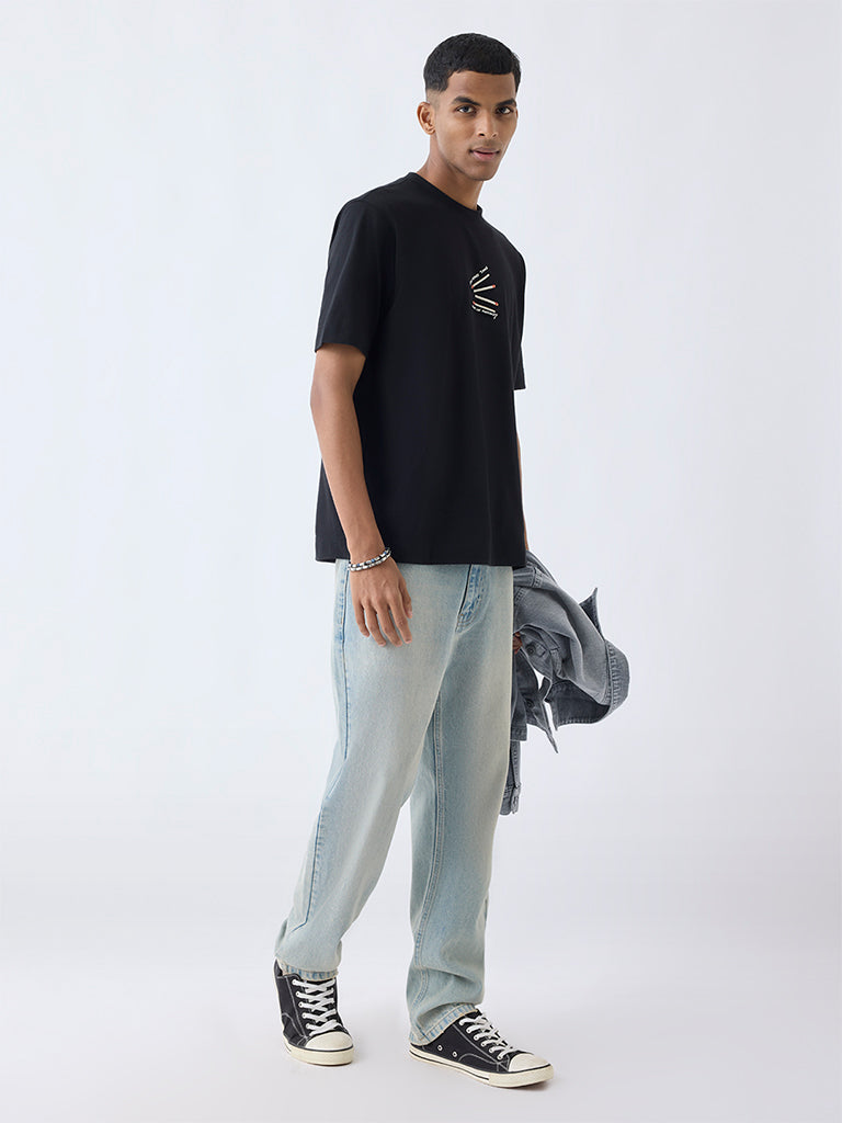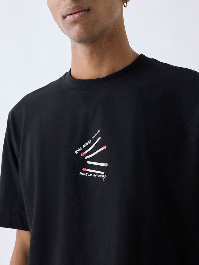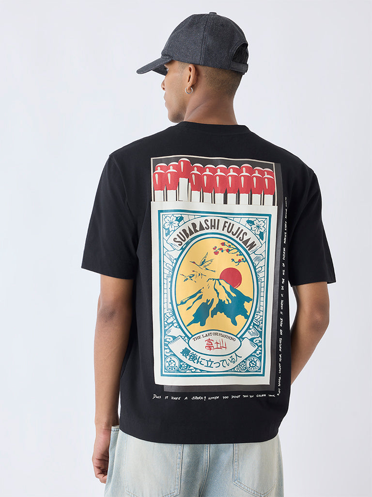 Nuon Black Graphic Printed Relaxed-Fit Cotton T-Shirt