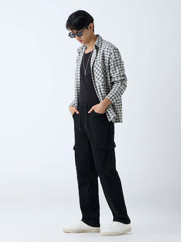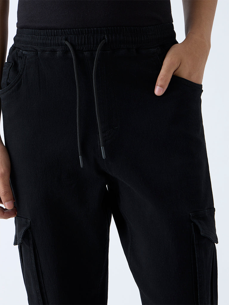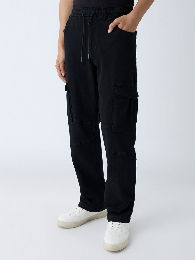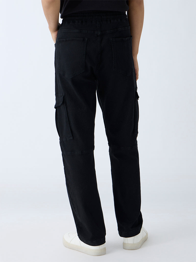 Nuon Black Relaxed-Fit Mid-Rise Cotton-Blend Cargo Pants
