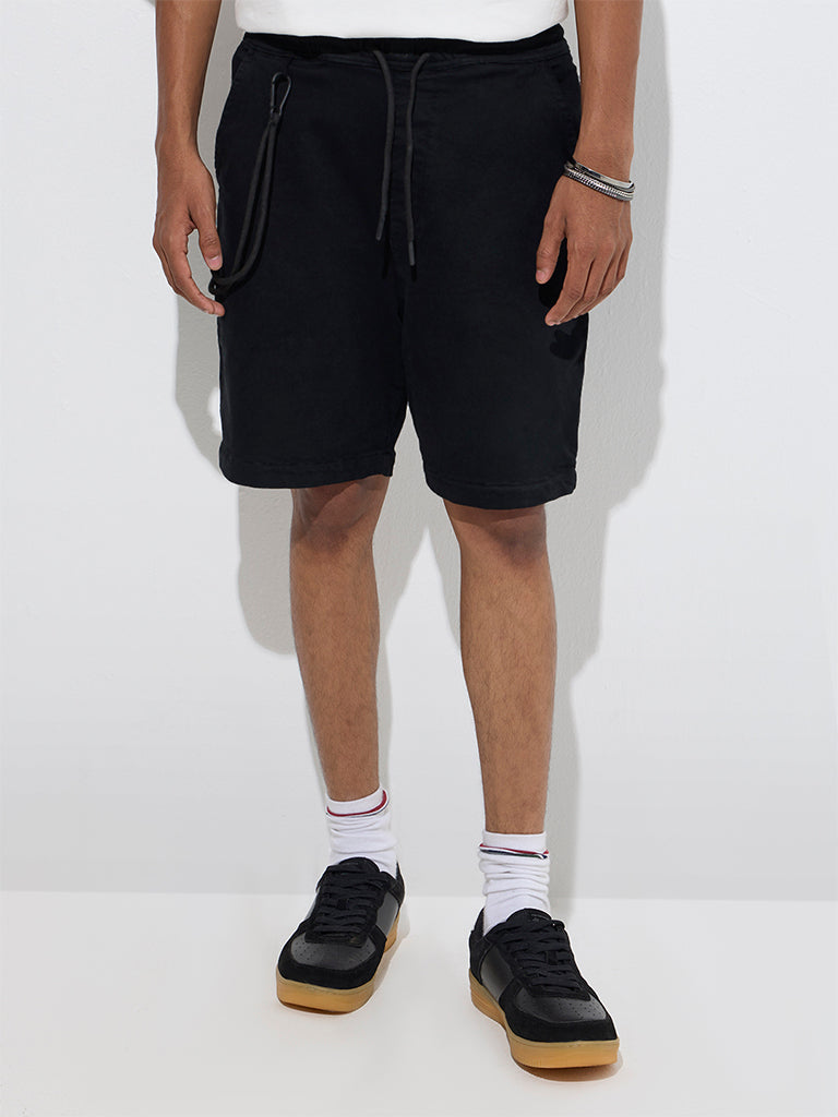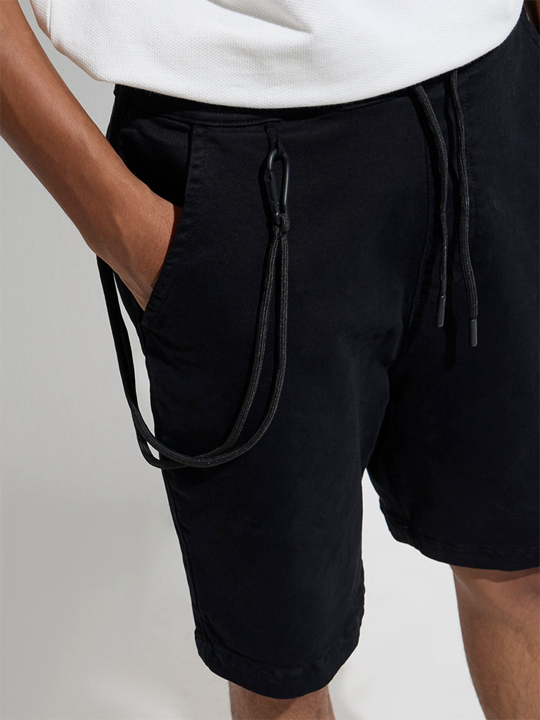 These black shorts from Nuon are designed for effortless street-style appeal. Constructed from a durable cotton-blend fabric in a relaxed silhouette. they feature an elasticated waistband with adjustable drawstrings for a comfortable fit. Finished with multiple pockets and a detachable cord detail. they bring utility and edge to your off-duty wardrobe.