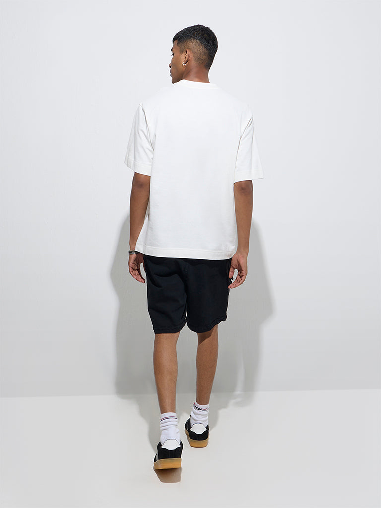Nuon Black Relaxed-Fit Mid-Rise Cotton-Blend Shorts