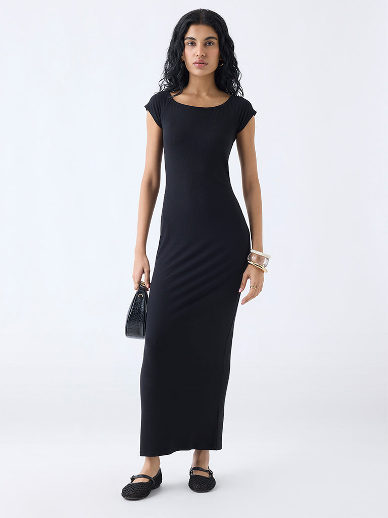 Nuon Black Ribbed-Textured Bodycon Dress