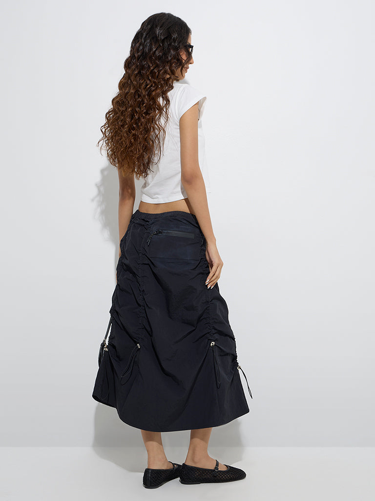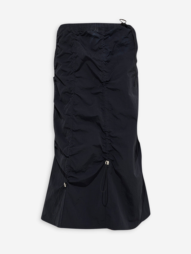 Nuon Black Ruched Detailed Mid-Rise Skirt