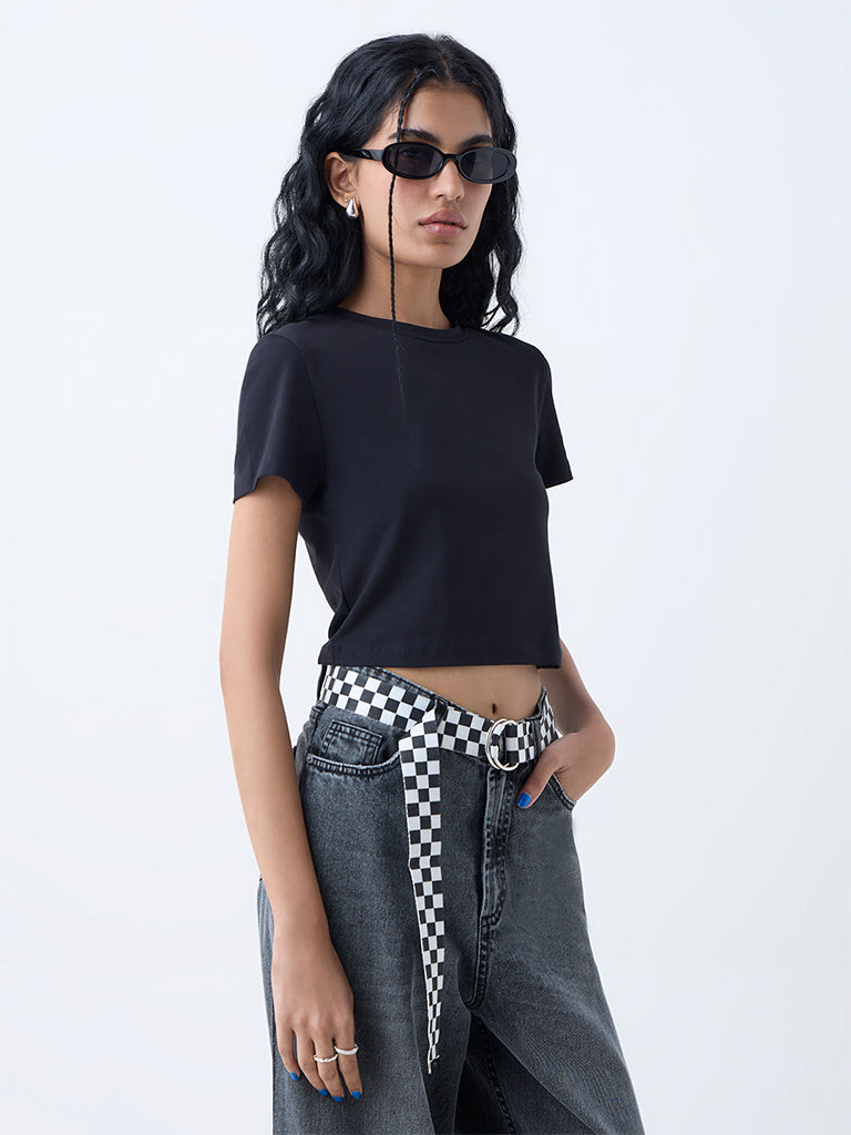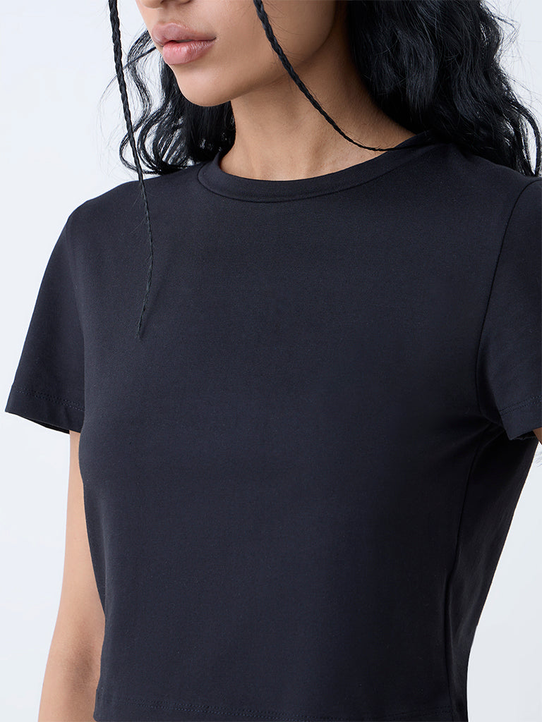 Built as a foundational piece for your off-duty edit. this black tee from Nuon is made from a cotton-rich fabric. Framed with a round neck and short sleeves. it pairs effortlessly with casual or layered looks.