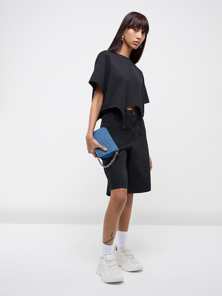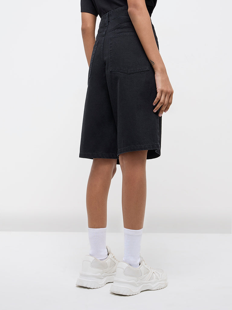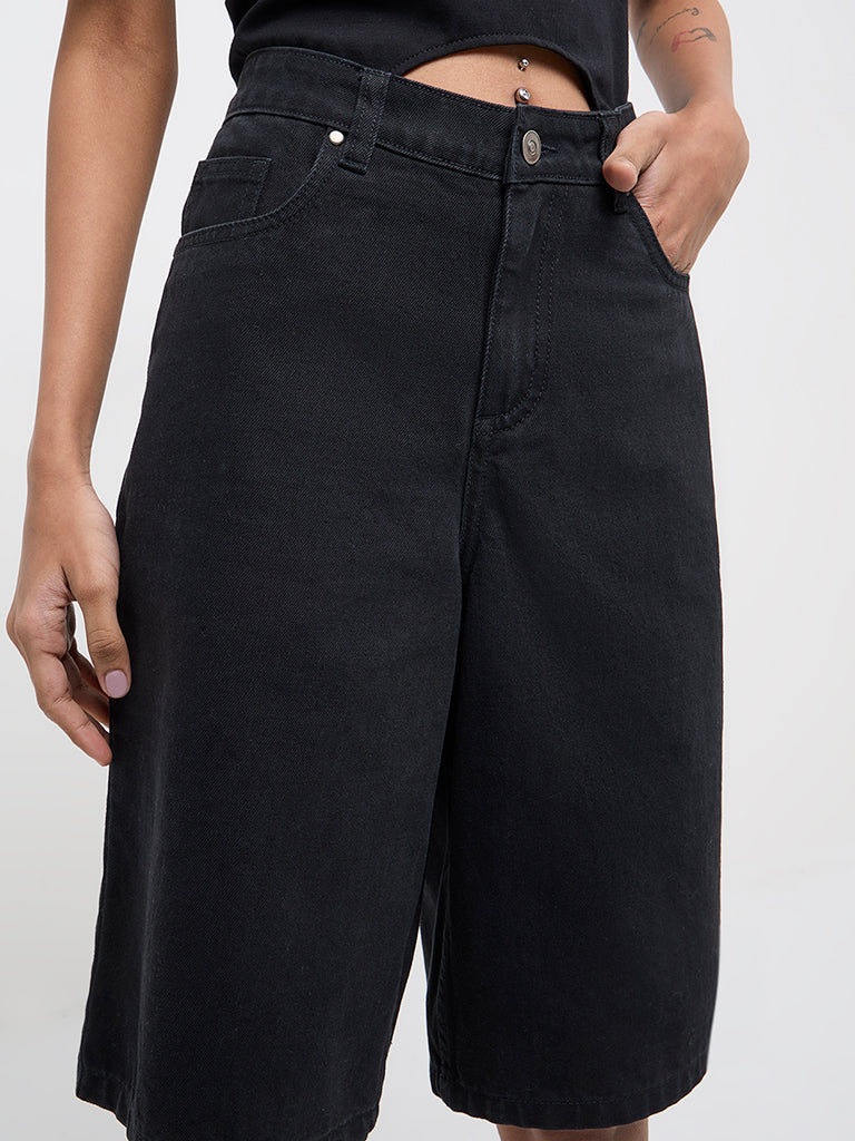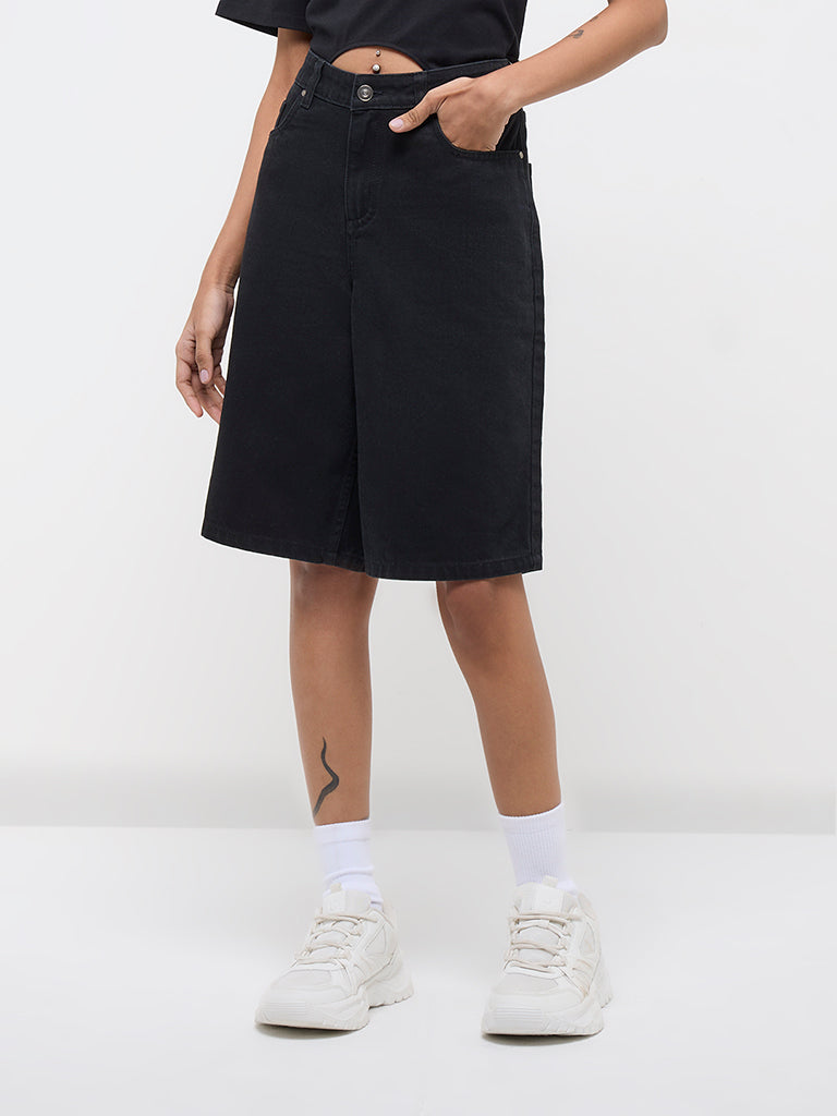 Be the first to review “Nuon Black Solid High-Rise Denim Shorts”