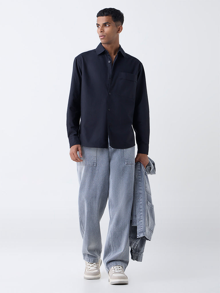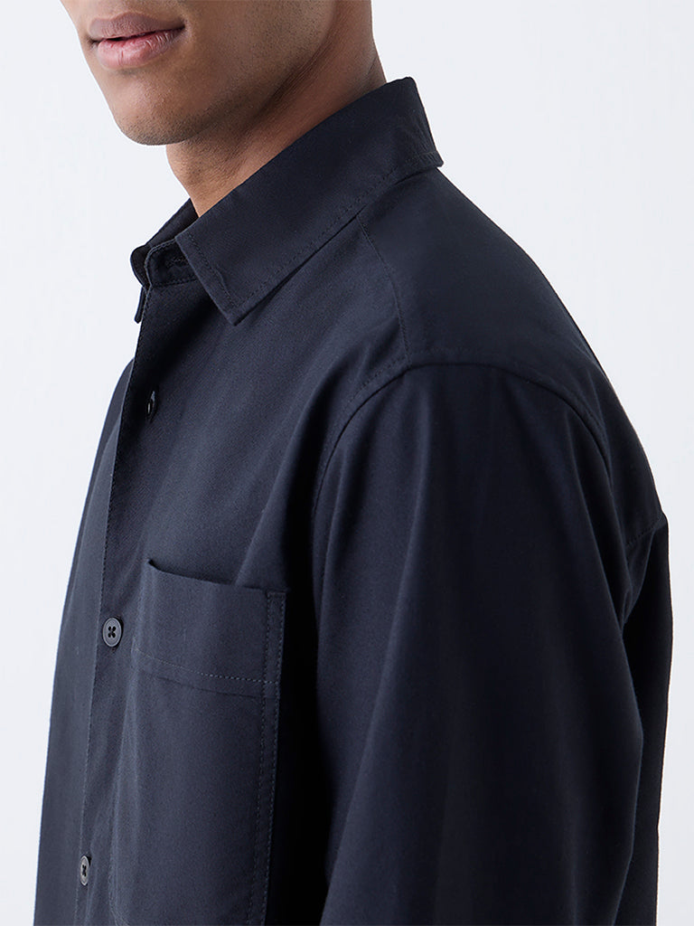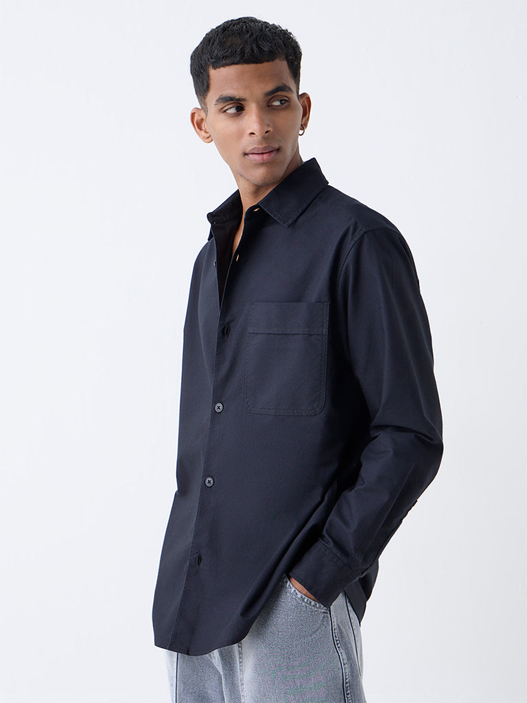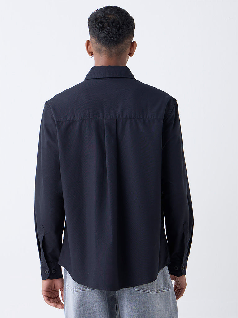Nuon Black Solid Relaxed-Fit Cotton Shirt