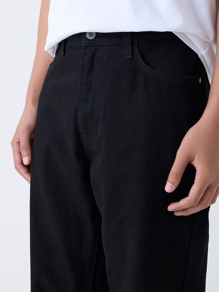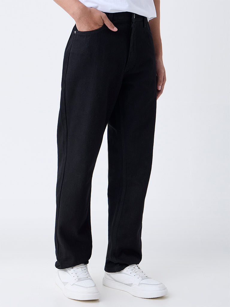 Nuon Black Solid Relaxed-Fit Mid-Rise Jeans