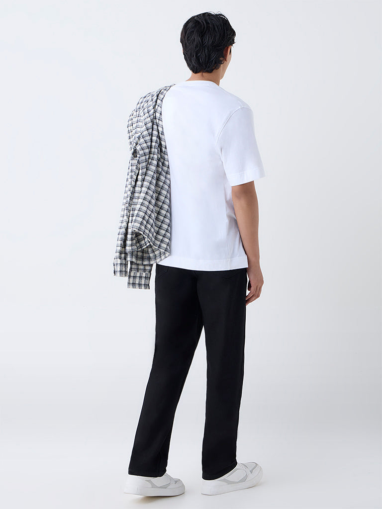 Elevate your casual essentials with these black mid-rise jeans from Nuon. Crafted from a comfortable cotton blend. they feature a relaxed fit for easy wear. Designed with a smooth buttoned waistband. secure zipper fly. functional belt loops. and multiple pockets. these jeans offer the perfect balance of style and practicality.