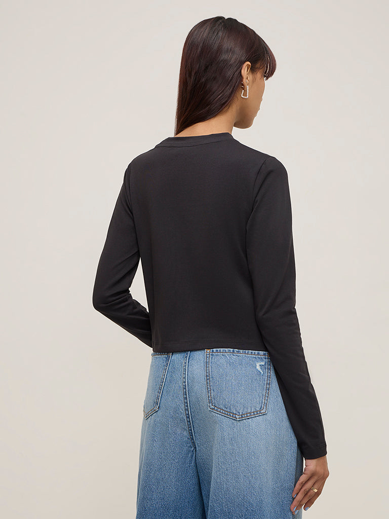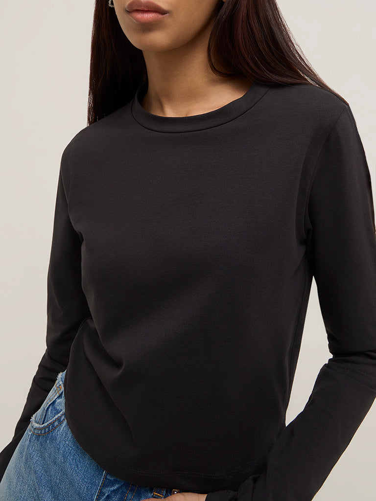Nuon launches this black solid t-shirt in a quality fabric build. It is completed with a basic round neck and full sleeves.