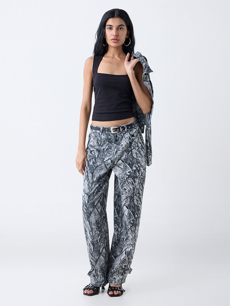 Upgrade your casual rotation with this black tank top from Nuon. Milled from a lightweight fabric. it features a flattering square neck and a sleeveless cut for a streamlined silhouette.