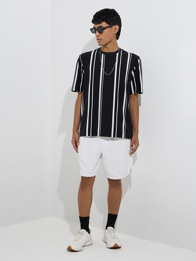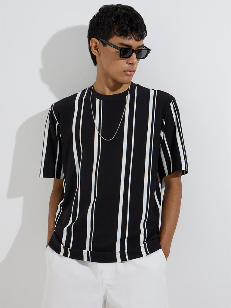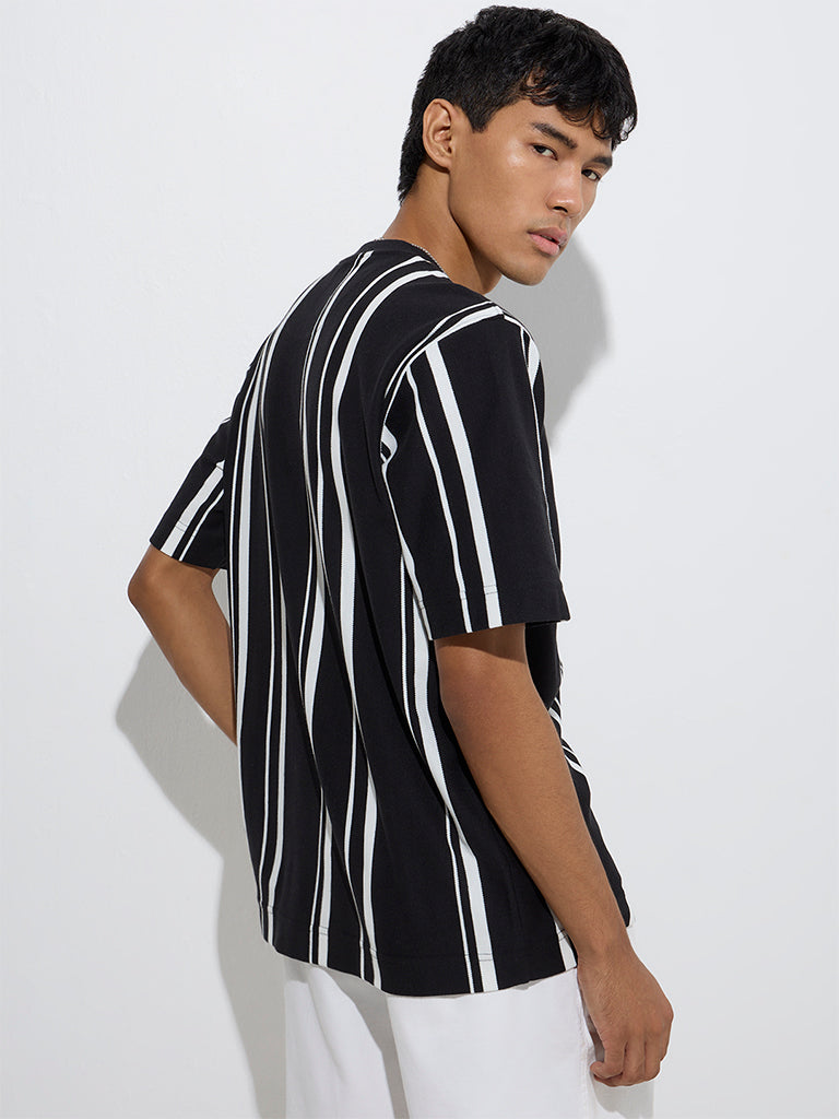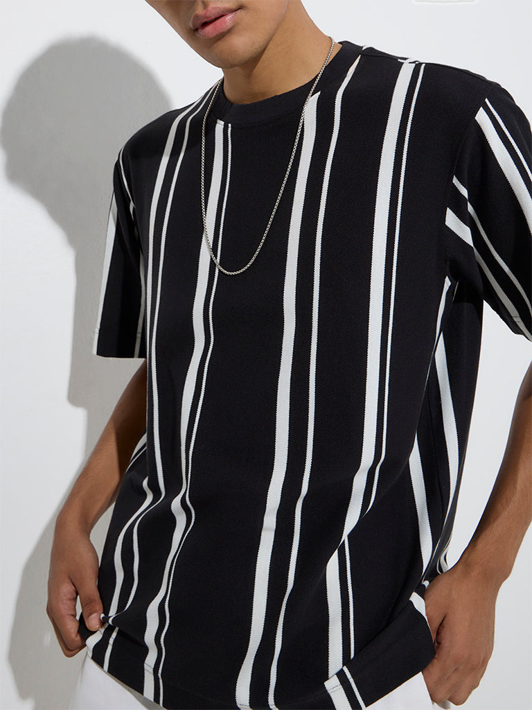 Nuon Black Stripe Printed Relaxed-Fit T-Shirt