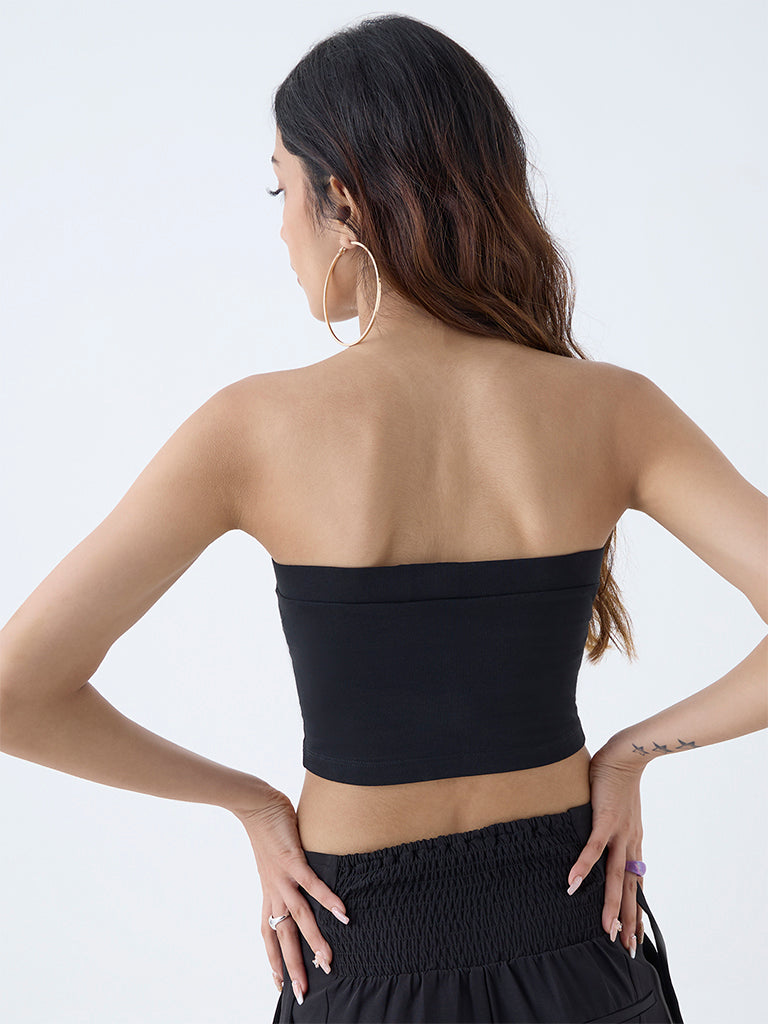 Nuon Black Text Printed Cotton-Blend Tube Top