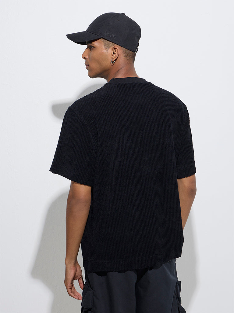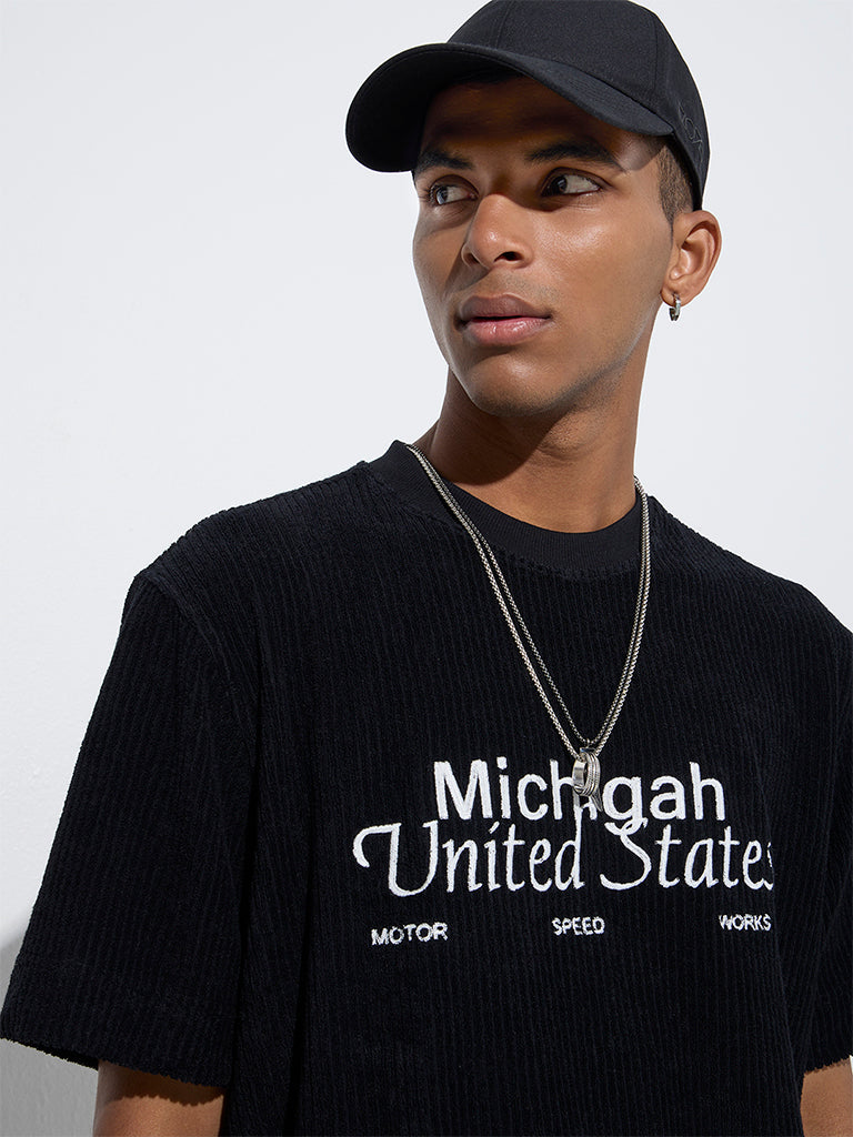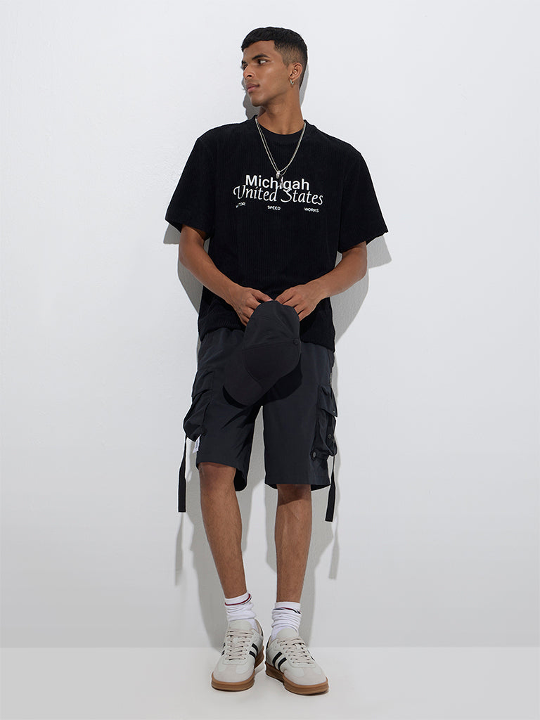 Nuon Black Text Printed Relaxed-Fit Cotton-Blend T-Shirt
