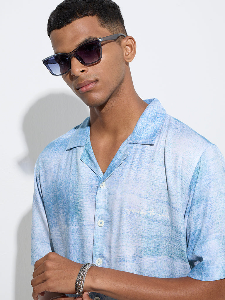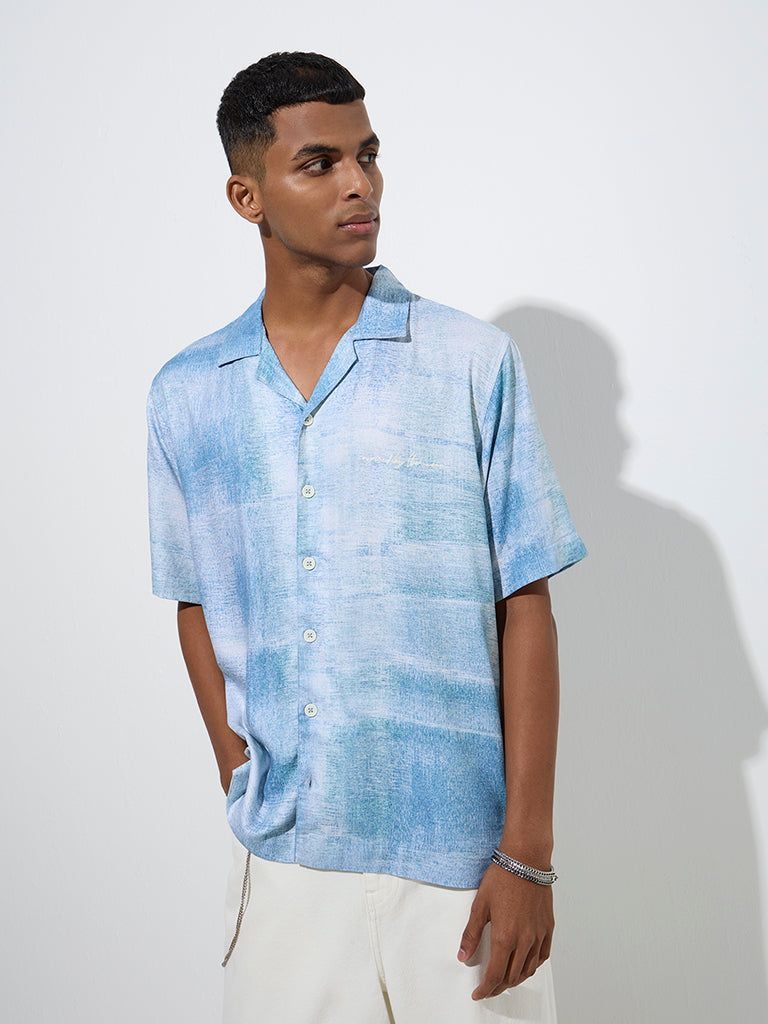 Nuon Blue Abstract Patterned Relaxed-Fit Shirt