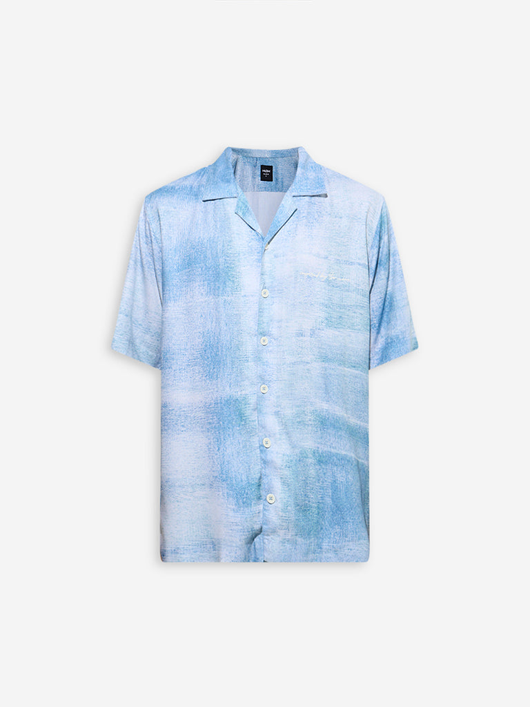 Nuon launches this blue shirt. patterned with abstract motifs for a modern edge. Spun from a lightweight fabric in a relaxed silhouette. it features a camp collar. a button placket. and half sleeves—making it a breezy staple for your off-duty wardrobe.