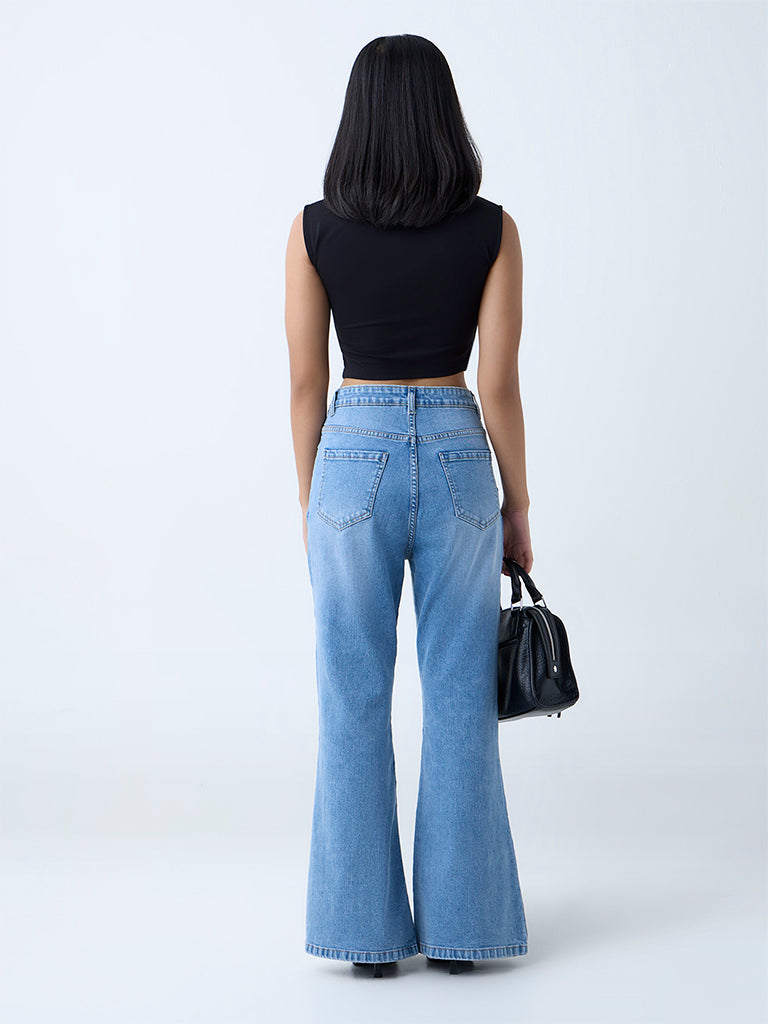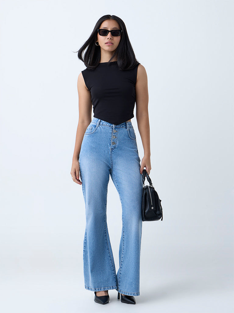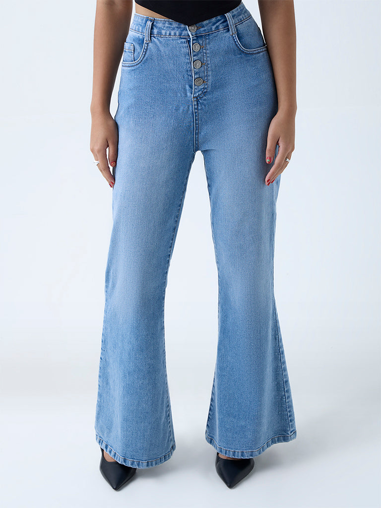 These blue jeans from Nuon are fashioned in a flattering bootcut silhouette. offering a subtle nod to retro styling. Crafted from a cotton-rich fabric for comfort with a hint of structure. they feature a buttoned waistband. belt loops. and a zipper placket. The classic five-pocket design completes the look. making them a dependable choice for your off-duty looks.