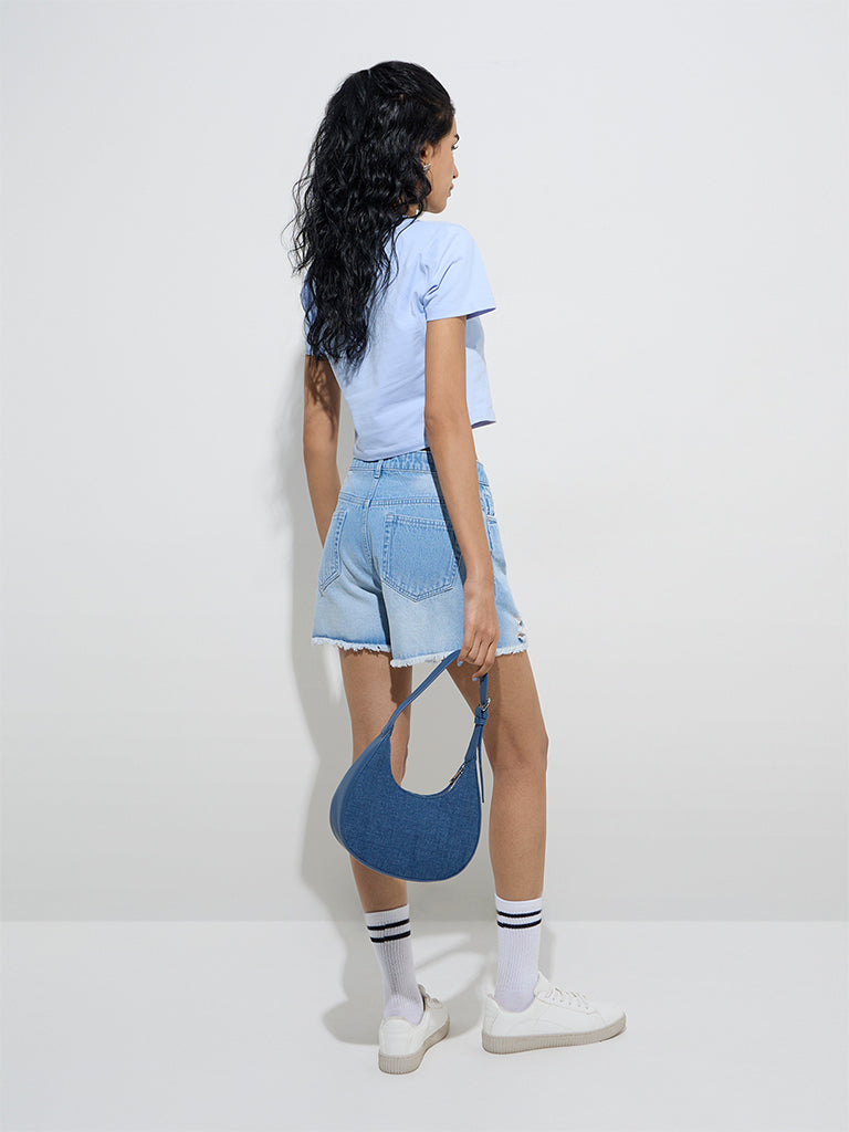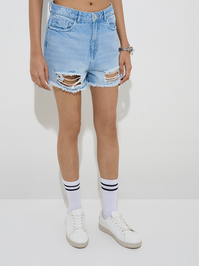 Nuon Blue Distressed Mid-Rise Denim Shorts