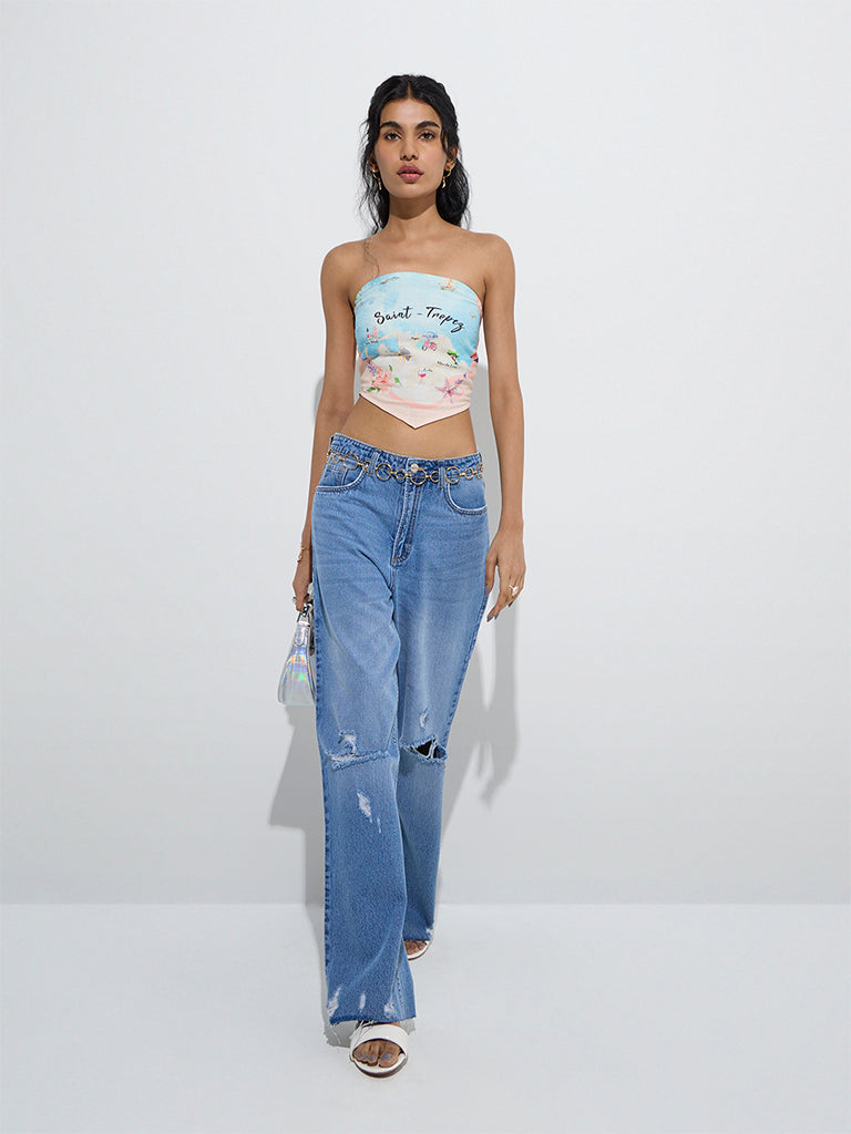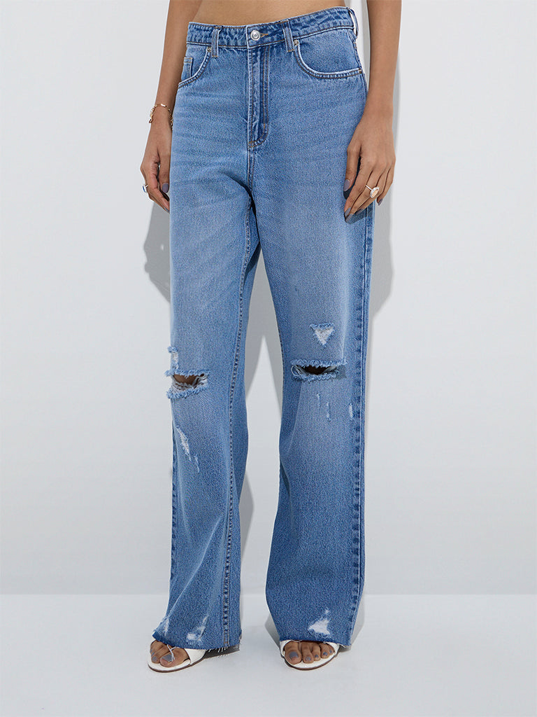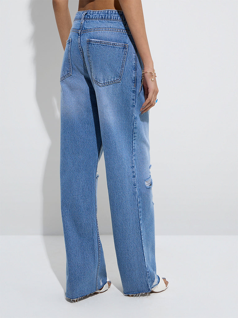 Nuon Blue Distressed Relaxed-Fit Mid-Rise Jeans
