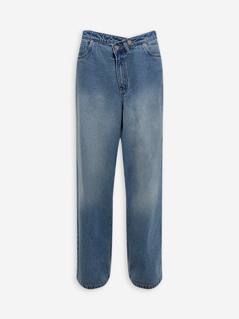 Nuon Blue Faded Wide-Leg Mid-Rise Jeans