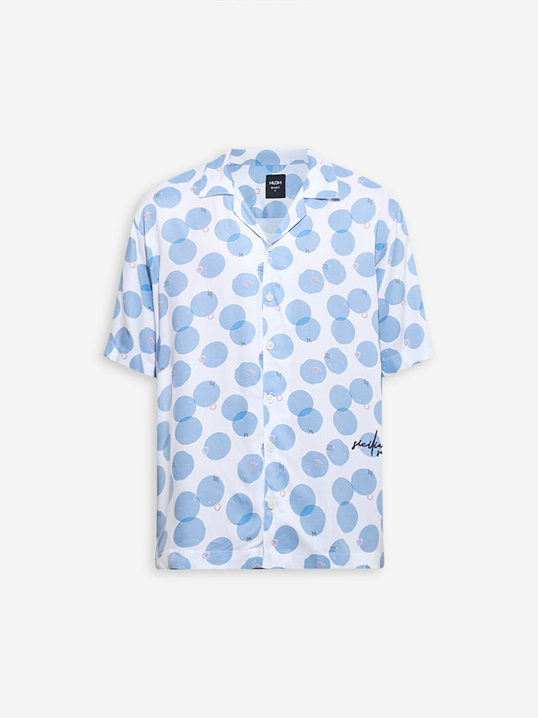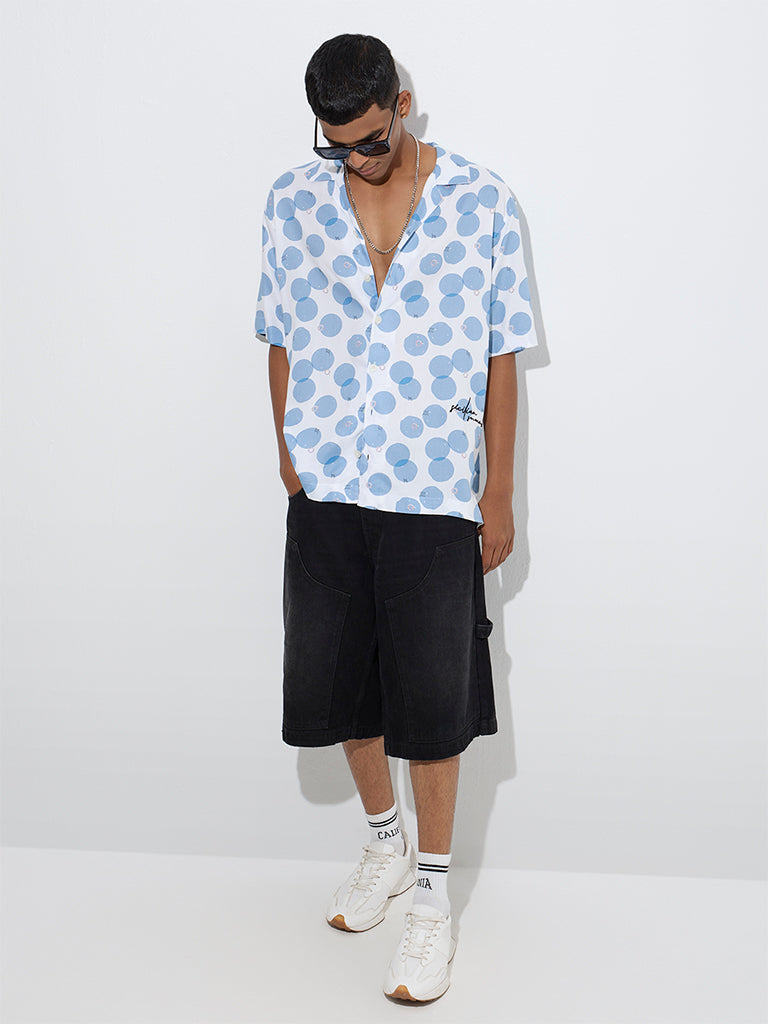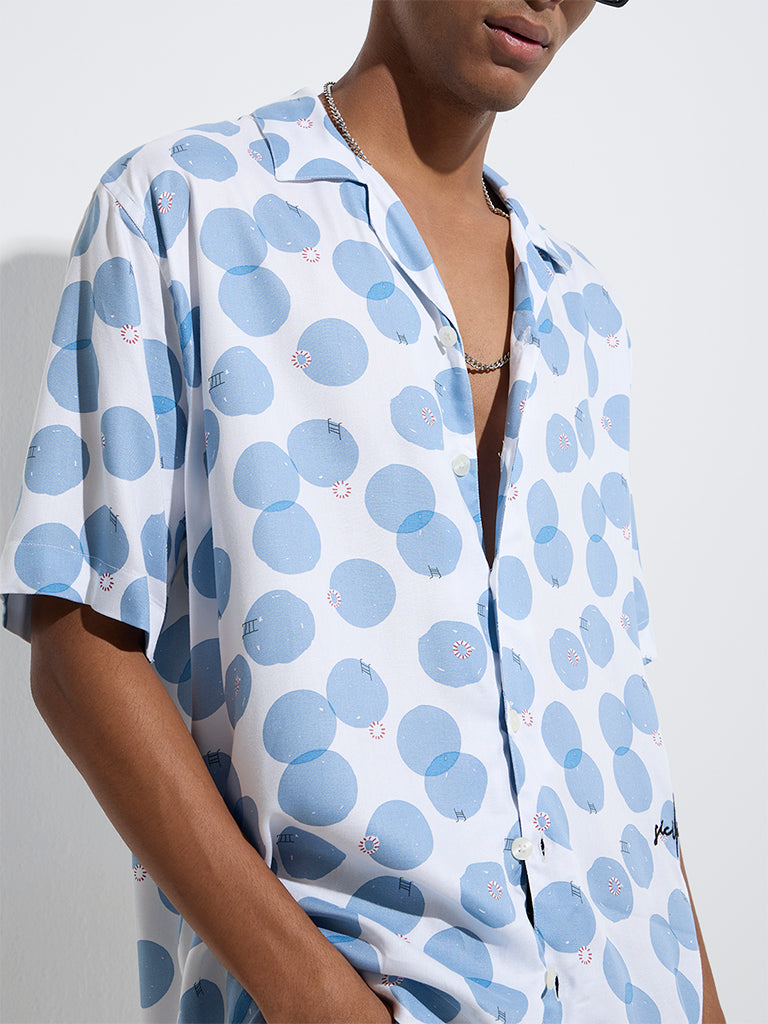 Nuon Blue Geometric Printed Relaxed-Fit Shirt