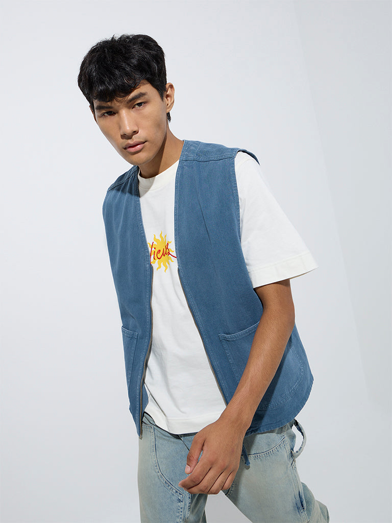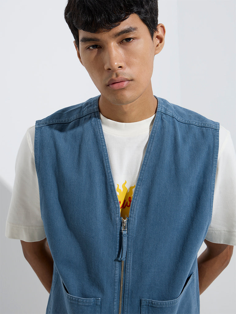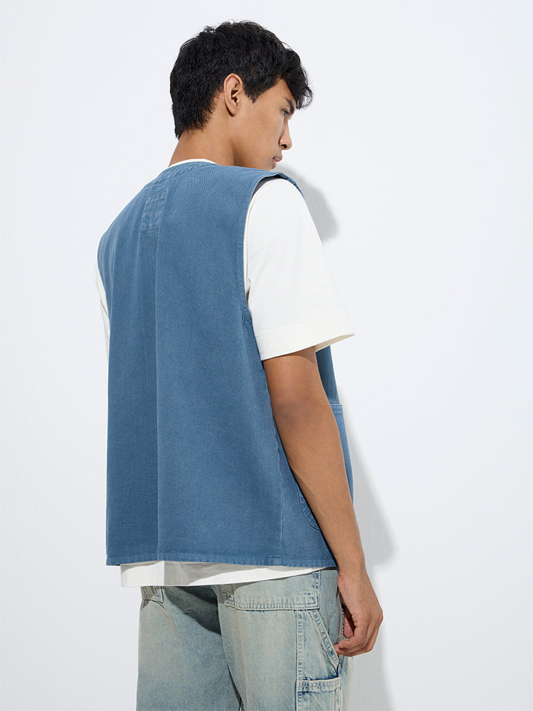 Nuon Blue Relaxed-Fit Denim Vest Jacket