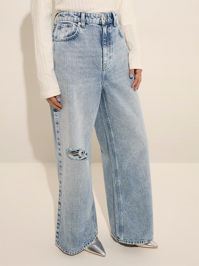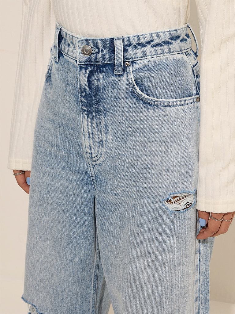 Nuon Blue Ripped Relaxed-Fit High-Rise Jeans