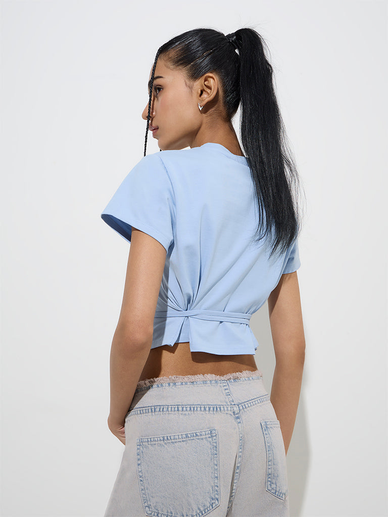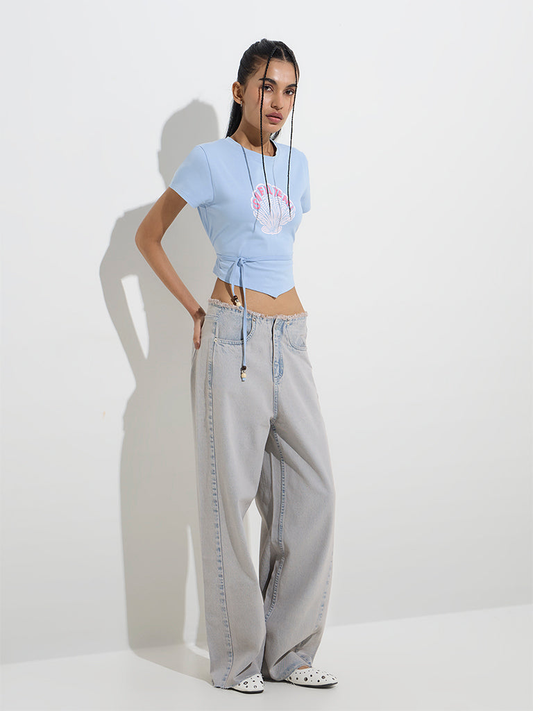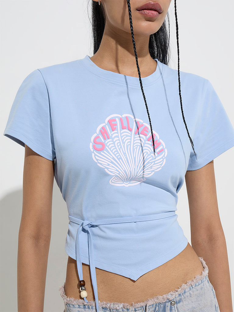 This blue t-shirt from Nuon showcases a striking seashell print that adds a touch of coastal charm. Made from a cotton-rich fabric. it’s designed with a flattering corset-style waist to create a more defined silhouette. The round neck and short sleeves offer a timeless look. while the side strings introduce an unexpected twist.