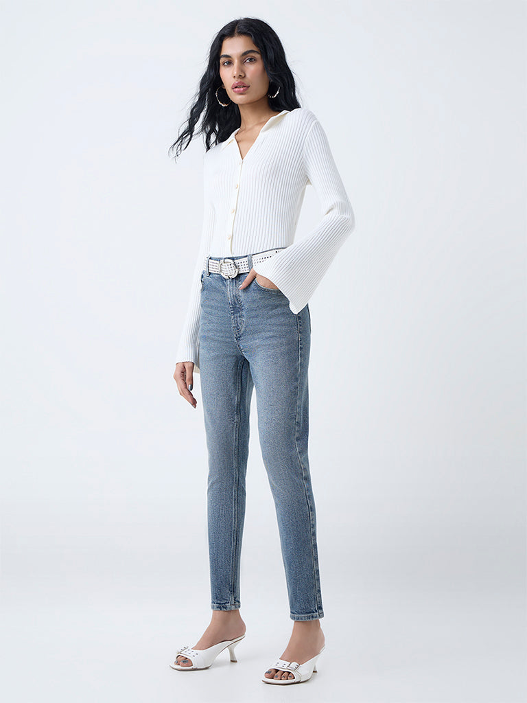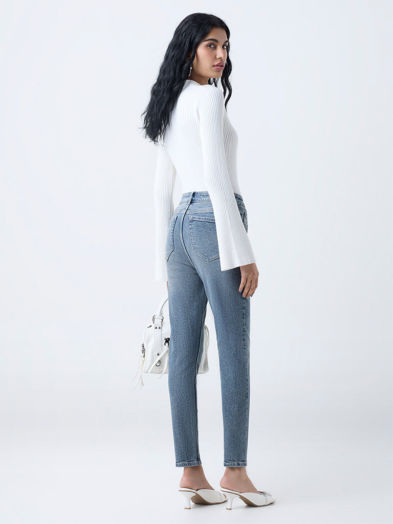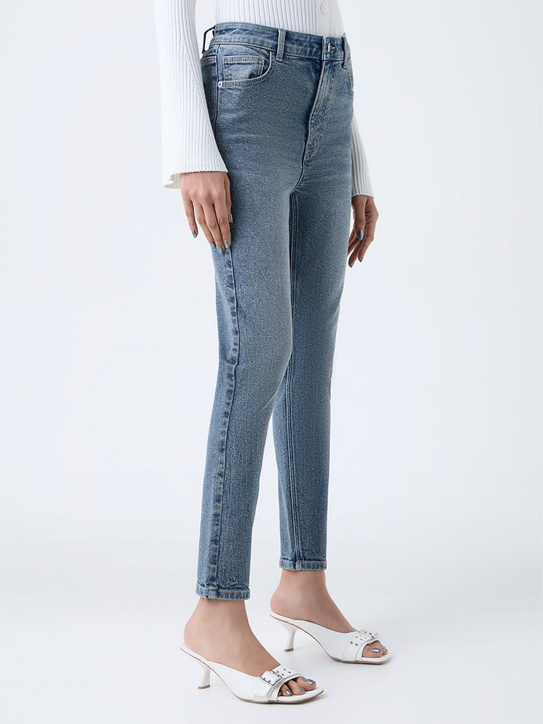Nuon brings these blue jeans. constructed from a breathable and lightweight fabric in a high-rise silhouette. It is framed with a buttoned waist. belt loops and a zipper placket. Completed with a five-pocket design. the pair offers a streamlined finish that provides everyday comfort.
