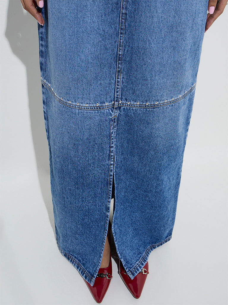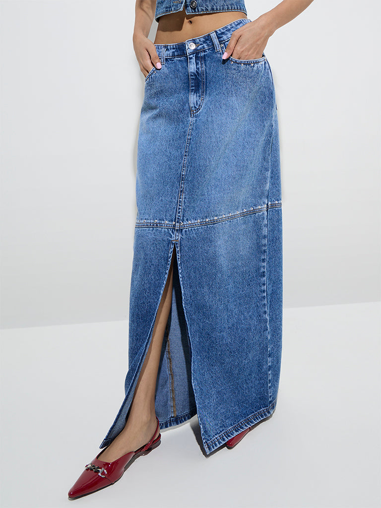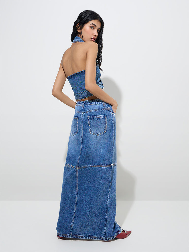 Nuon Blue Slit-Detailed High-Rise Denim Skirt