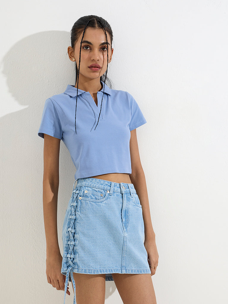 Nuon Blue Solid Cotton-Blend T-Shirt