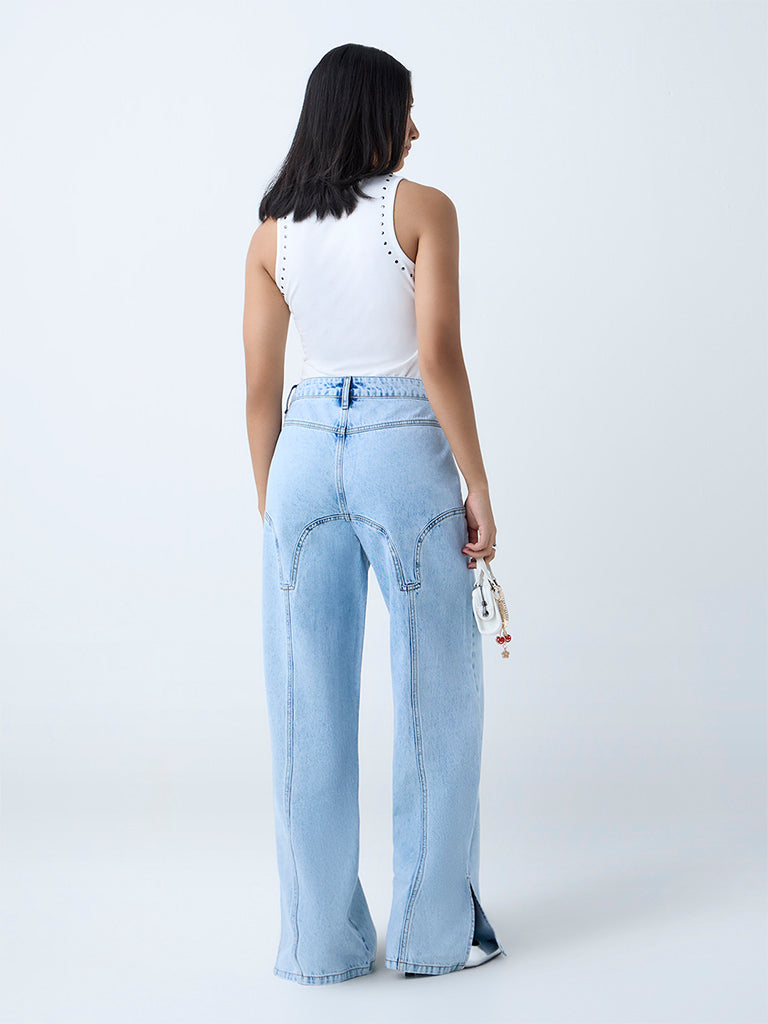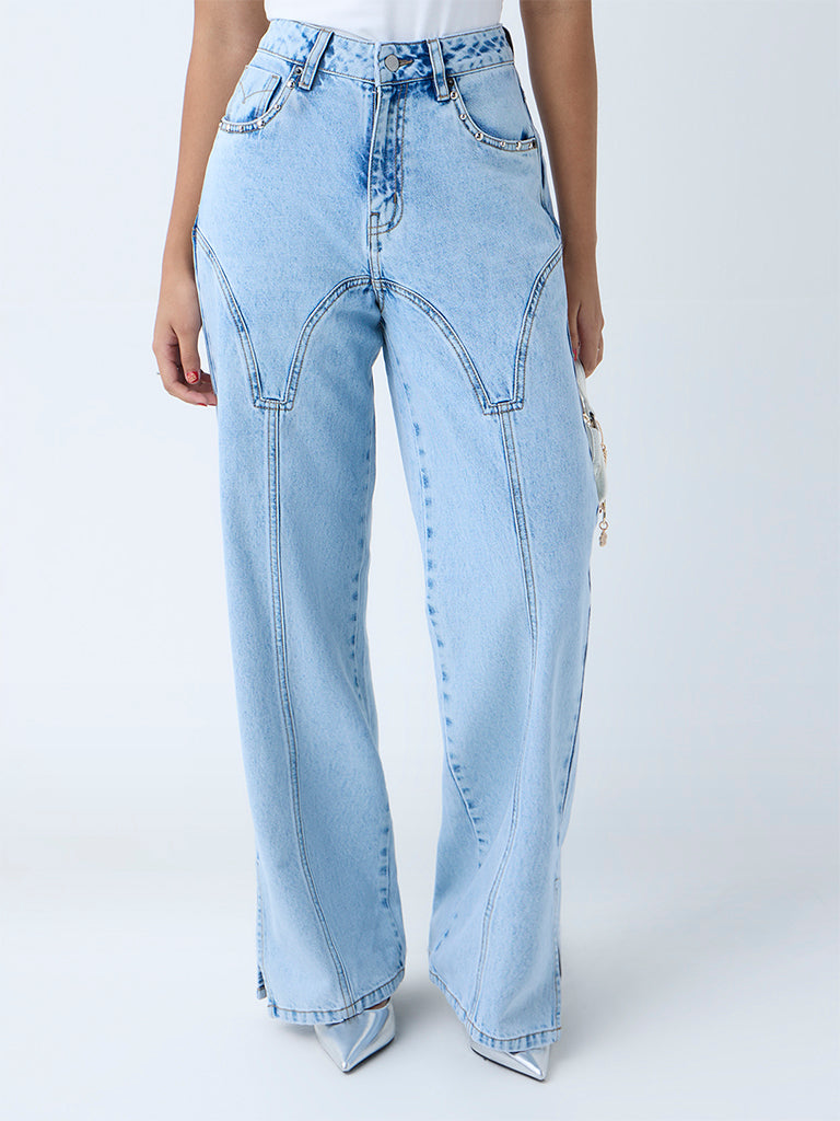 Nuon Blue Stitch-Detailed Relaxed-Fit High-Rise Jeans