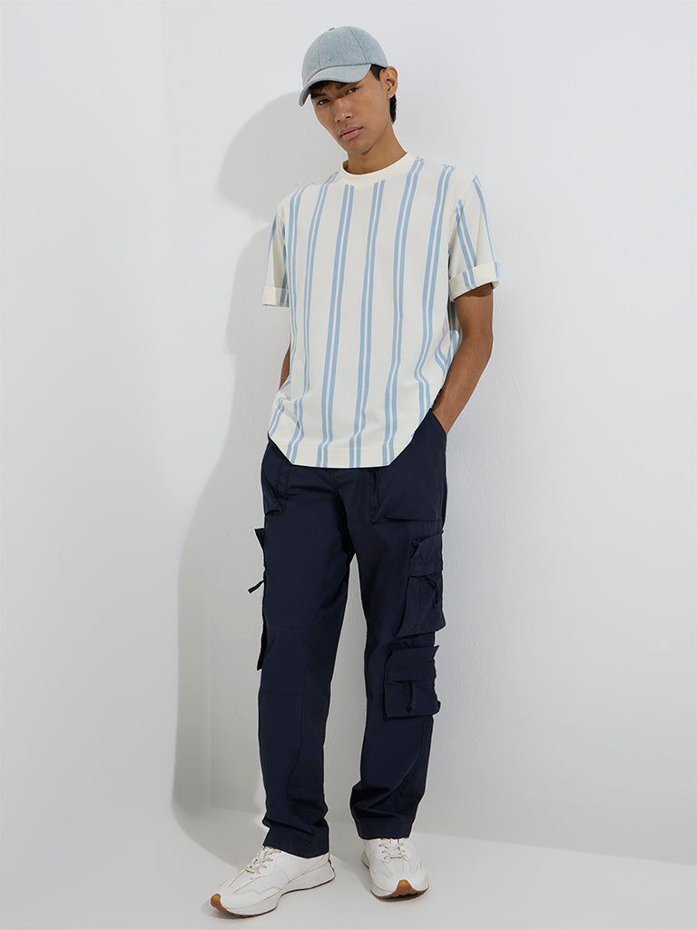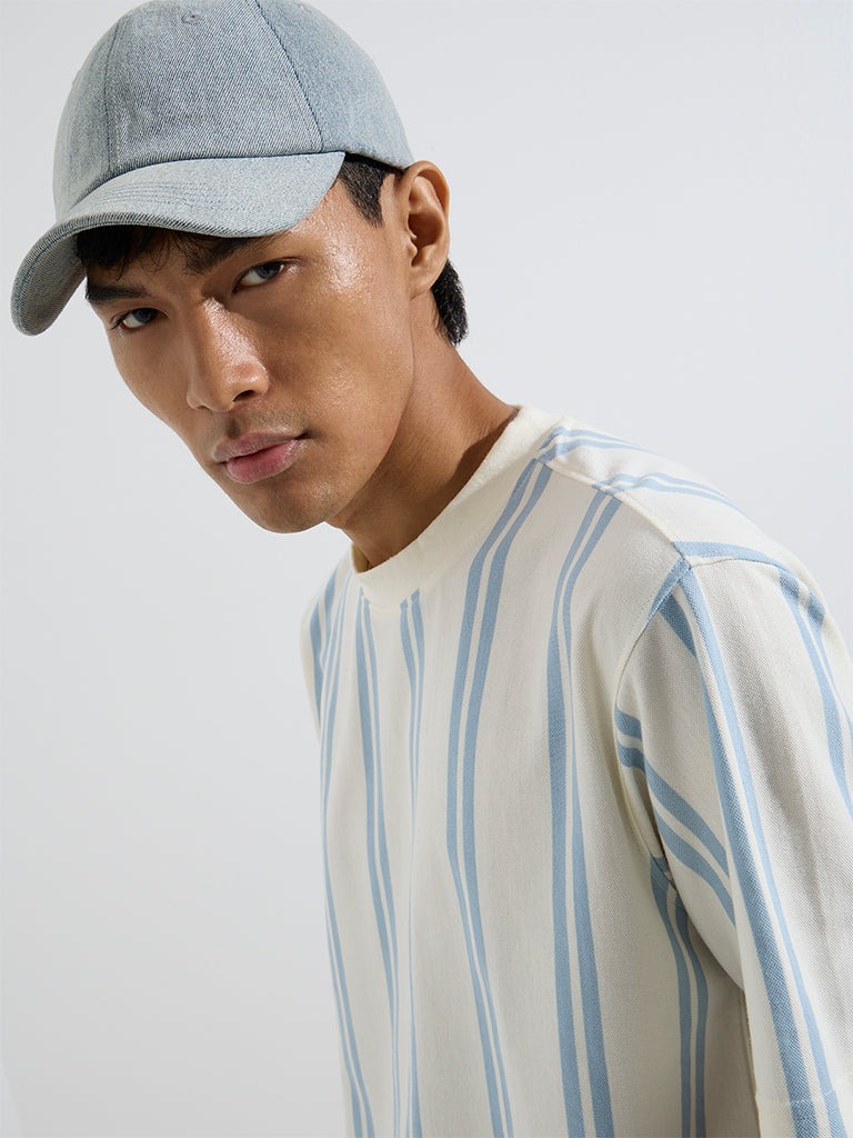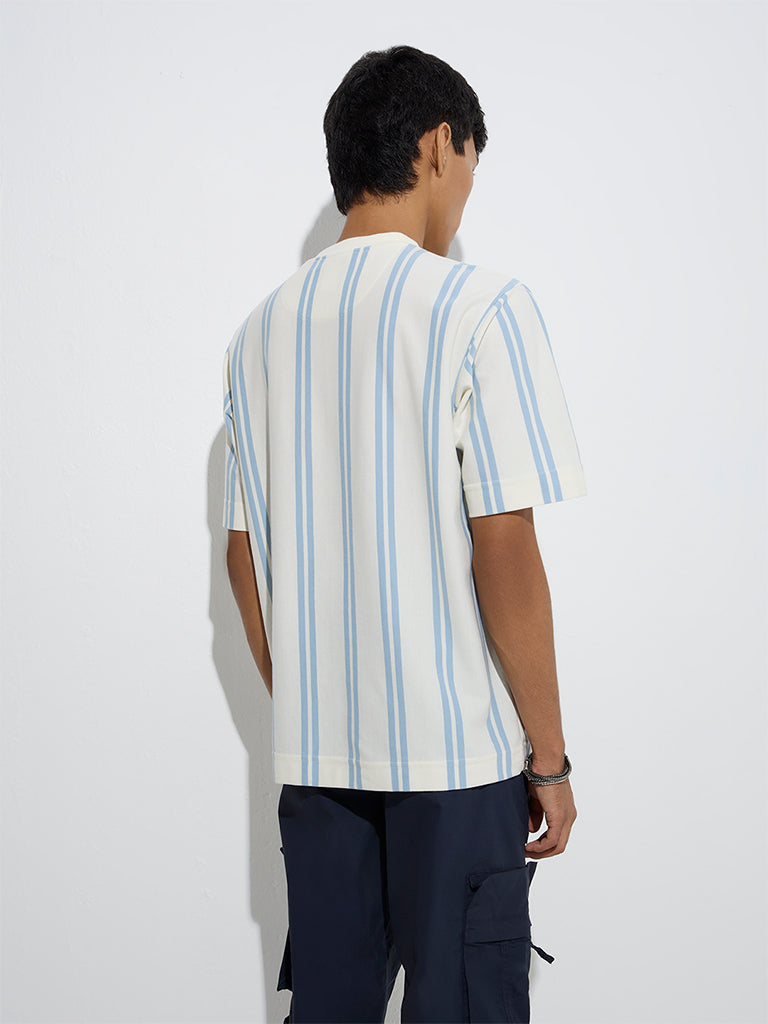 Nuon Blue Stripe Printed Relaxed-Fit T-Shirt