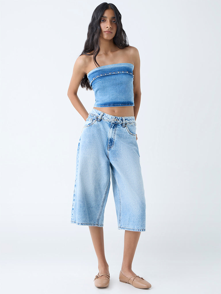 Nuon Blue Stud-Detailed Denim Tube Top