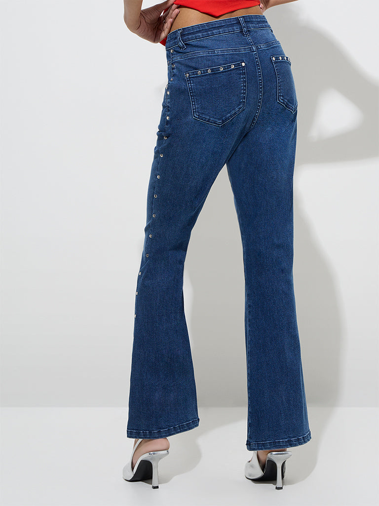 Nuon Blue Stud-Detailed Wide-Leg High-Rise Jeans
