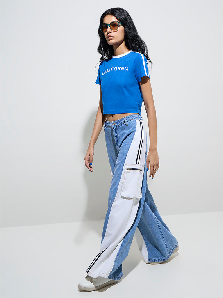 This blue t-shirt by Nuon showcases text and numerical prints. Made from pure-cotton for everyday comfort. it is complete with a round neck and short sleeves.