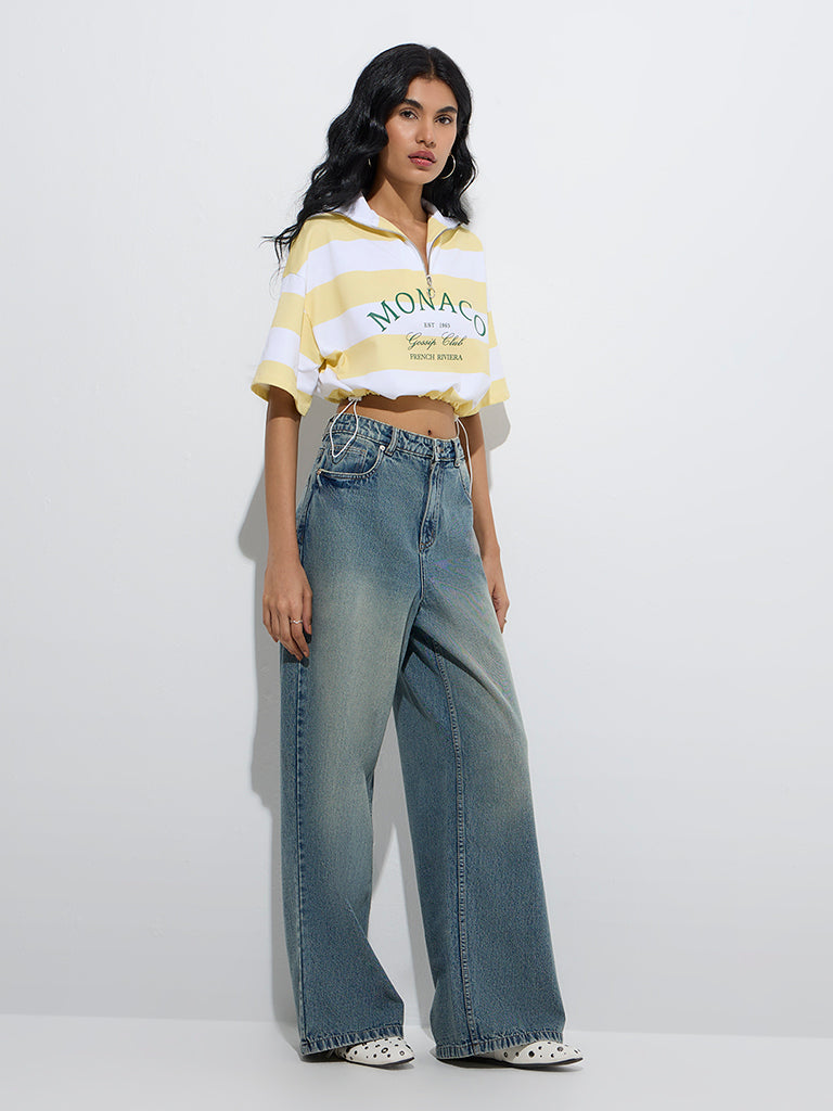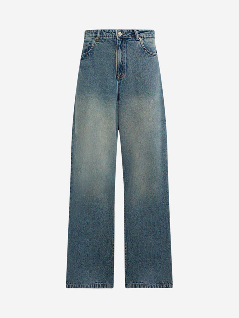 Nuon Blue Washed Relaxed-Fit High-Rise Jeans